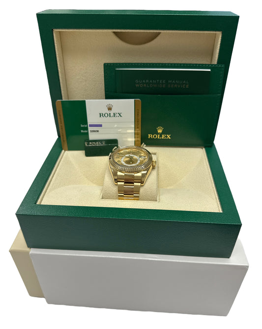 MINT PAPERS Rolex Sky-Dweller CHAMPAGNE ARABIC 18K Yellow Gold 42mm 326938 BOX