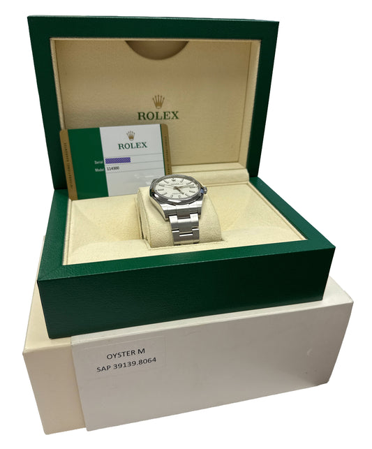 PAPERS Rolex Oyster Perpetual 39mm WHITE Stainless Steel Oyster 114300 Watch BOX