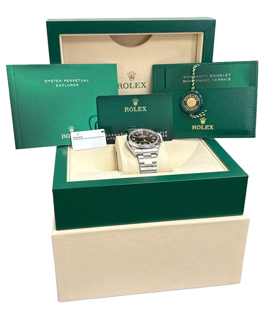2023 PAPERS Rolex Explorer I BLACK 36mm Stainless Steel 3-6-9 Watch 124270 BOX