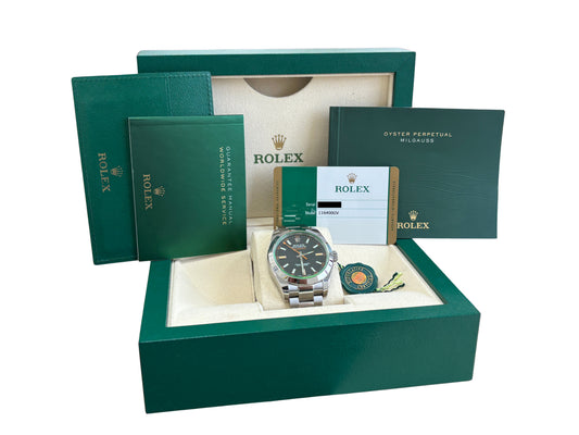 UNPOLISHED 2020 PAPERS Rolex Milgauss BLACK Green 40mm Steel 116400 GV Watch BOX
