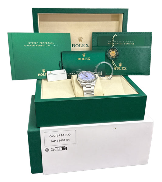2025 PAPERS Rolex Oyster Perpetual LAVENDER Purple Steel 36mm Watch 126000 BOX