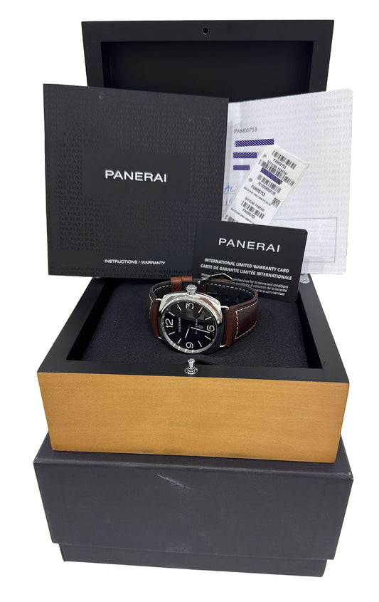 2023 PAPERS Panerai Radiomir Base PAM00753 Steel Leather 45mm PAM753 Watch BOX