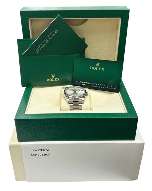 PAPERS Rolex DateJust 41mm RHODIUM DIAMOND Oyster 18K Fluted 126334 Watch BOX
