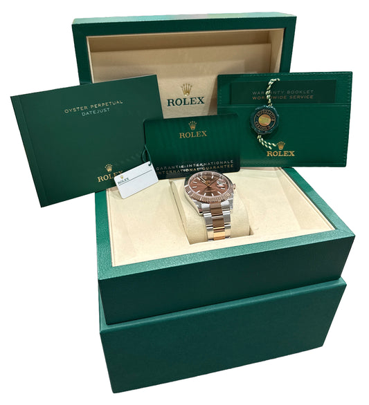 2025 PAPERS Rolex DateJust 41mm CHOCOLATE Brown OYSTER 18K Gold Steel 126331 BOX