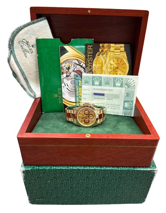 2000 PAPERS Rolex Daytona Cosmograph CHAMPAGNE SERTI DIAMOND 18K 40mm 16528 BOX