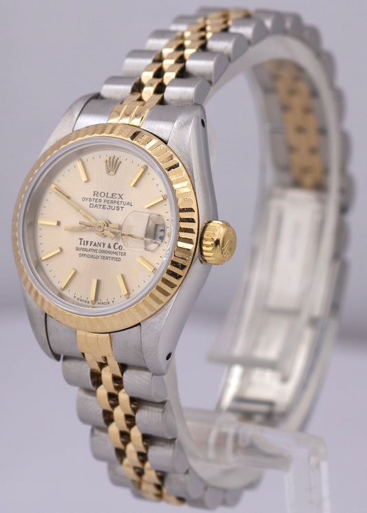 RARE Ladies Rolex DateJust TIFFANY DIAL Two-Tone 18K Gold 26mm Watch 69173
