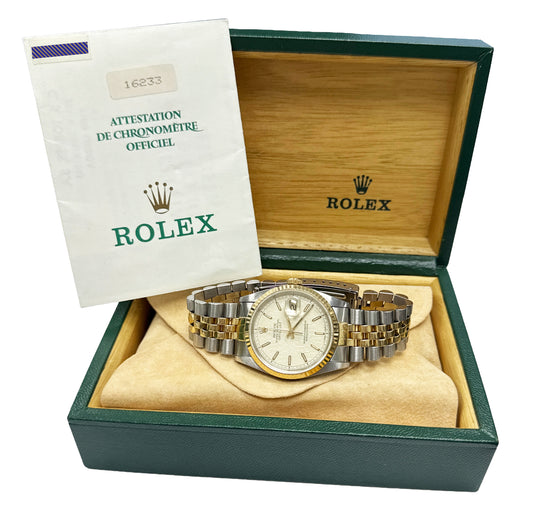 PAPERS Rolex DateJust 36mm IVORY COMPUTER JUBILEE 18K Gold Steel 16233 Watch BOX