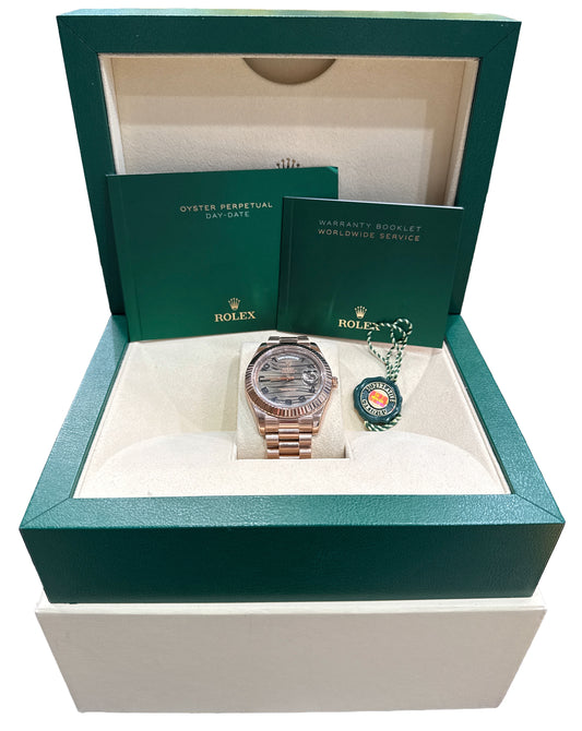 Rolex Day-Date II 41mm President Brown CHOCOLATE WAVE 18K Rose Gold 218235 BOX