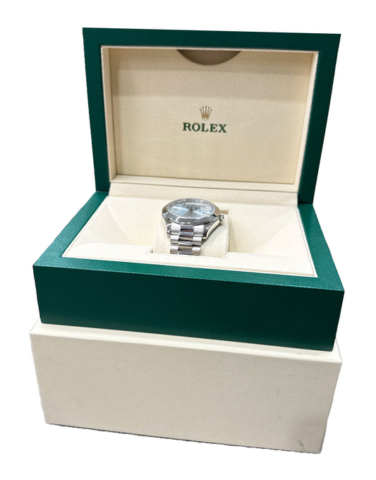 Rolex Day-Date Presidential 41mm 950 PLATINUM DIAMOND Blue Glacier 218206 BOX