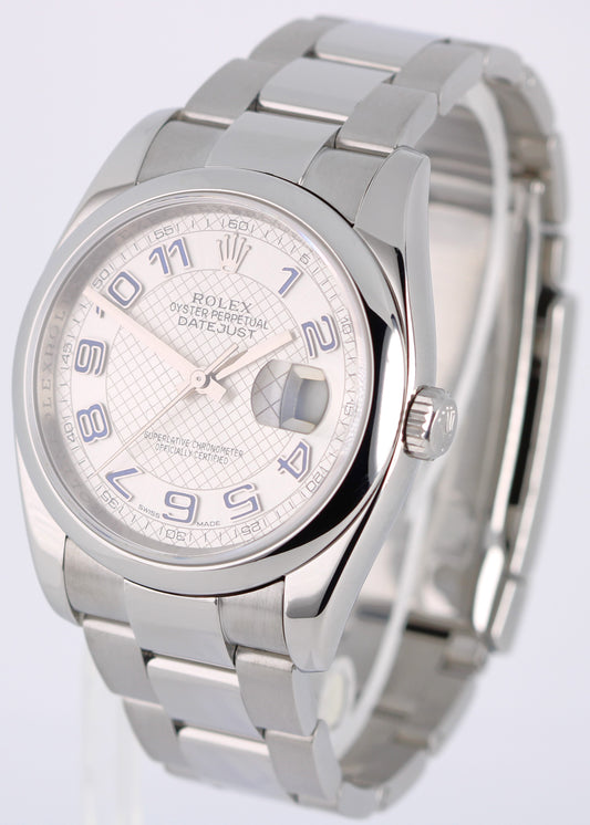 Rolex DateJust 36 Steel Silver CONCENTRIC Blue Arabic 36mm 116200 Watch