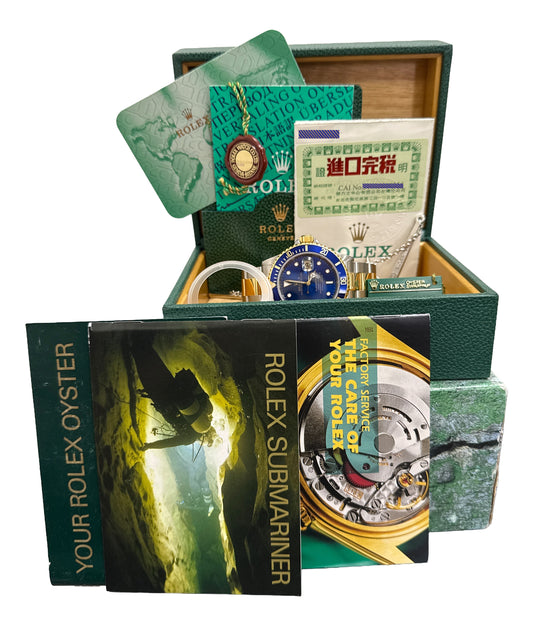 PAPERS Rolex Submariner 40mm BLUE 18K Yellow GOLD BUCKLE Stainless 16613 BOX