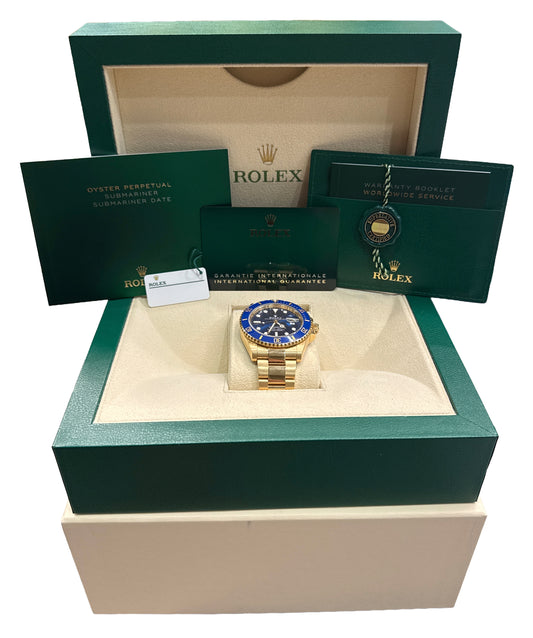 2022 PAPERS Rolex Submariner Date 41 BLUE 18K Yellow Gold 41mm 126618 LB BOX