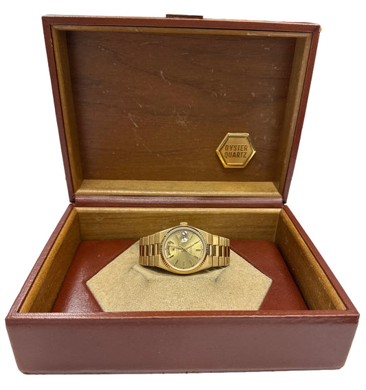 VINTAGE 1979 Rolex OysterQuartz Day-Date President CHAMPAGNE 18K Gold 19018 BOX