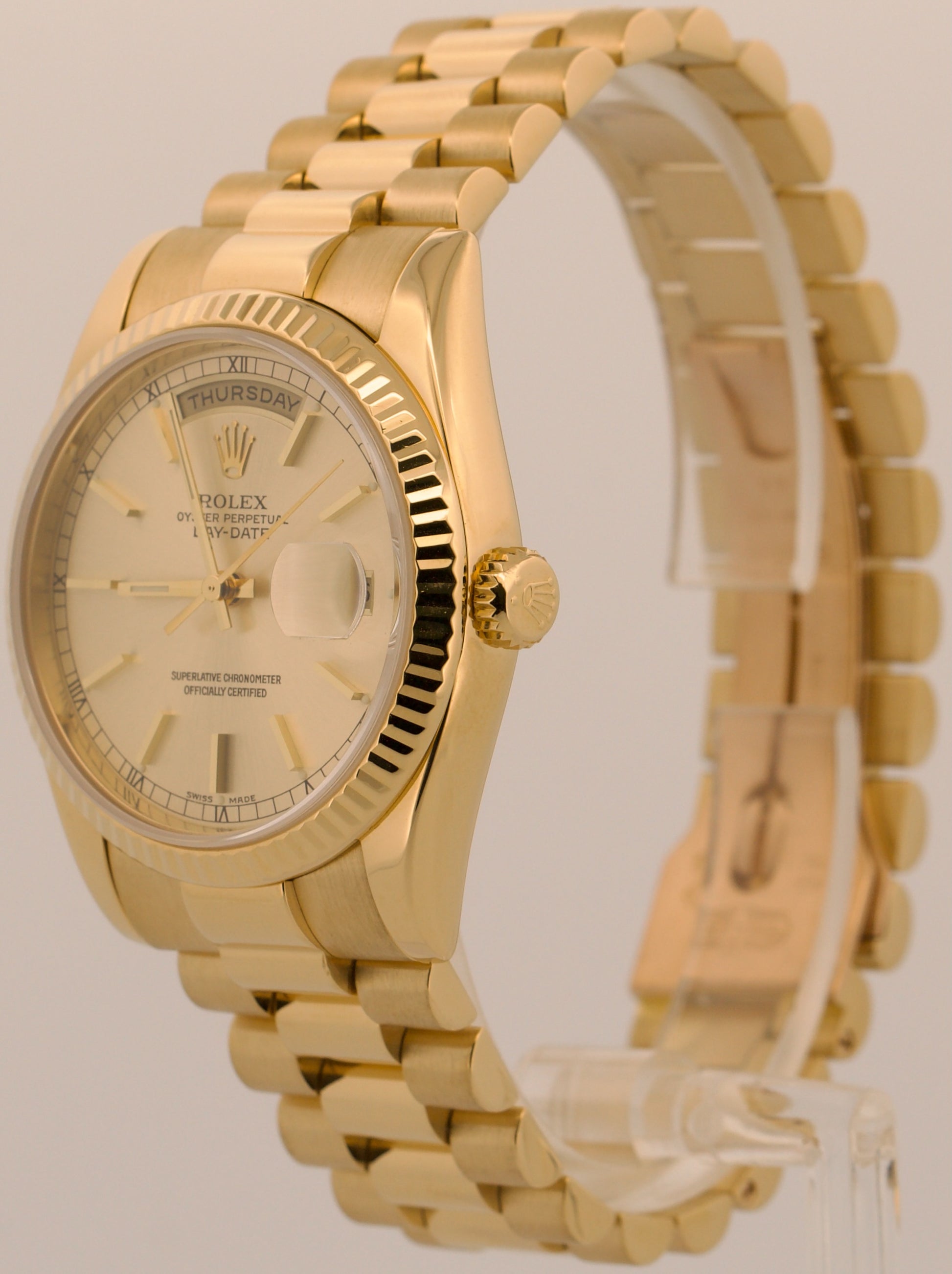 2014 RSC Rolex Day-Date President SILVERED CHAMPAGNE 36mm 18K Gold 118238 BOX