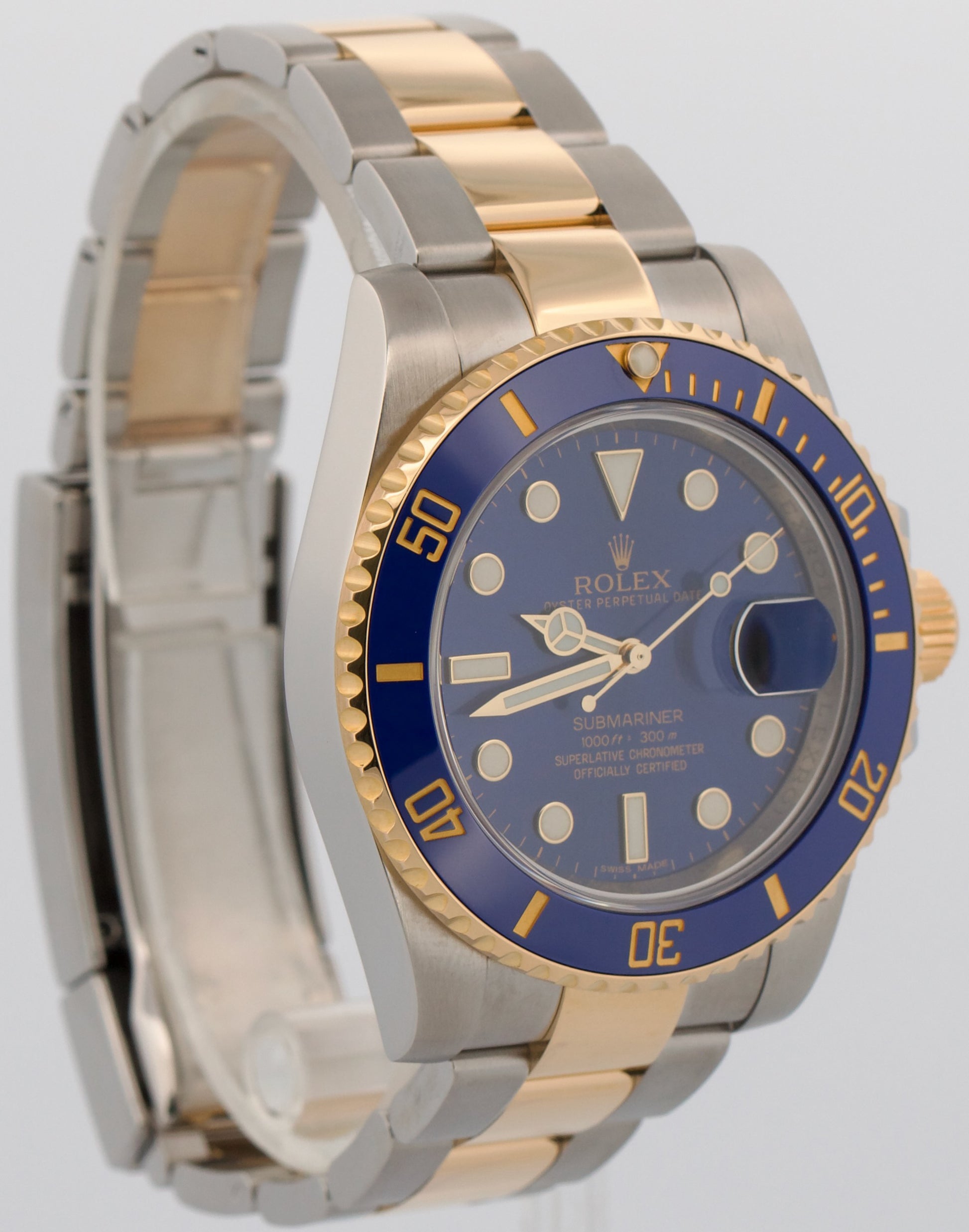 2015 PAPERS Rolex Submariner Date BLUE Two-Tone 18K Steel 40mm 116613 LB BOX