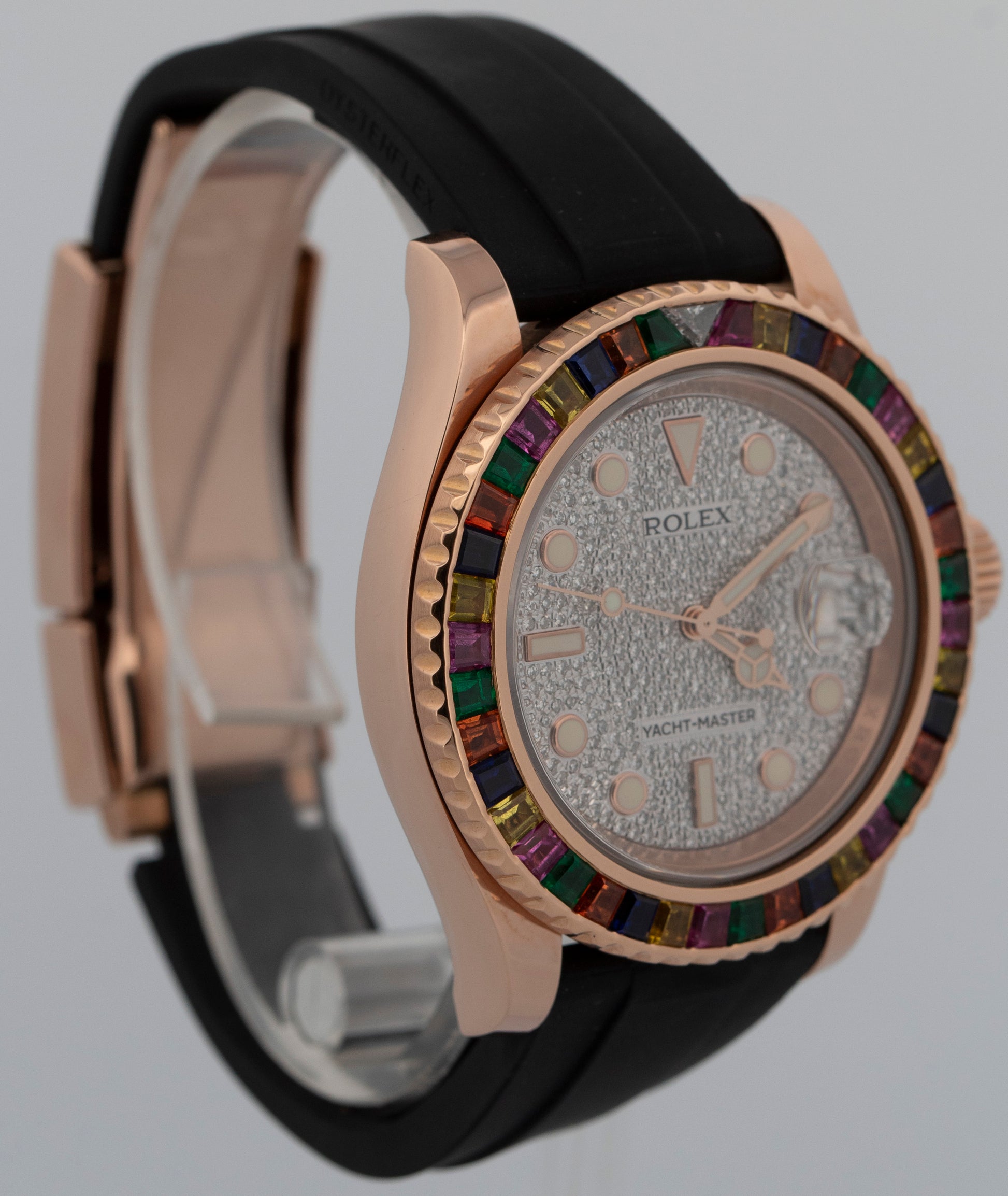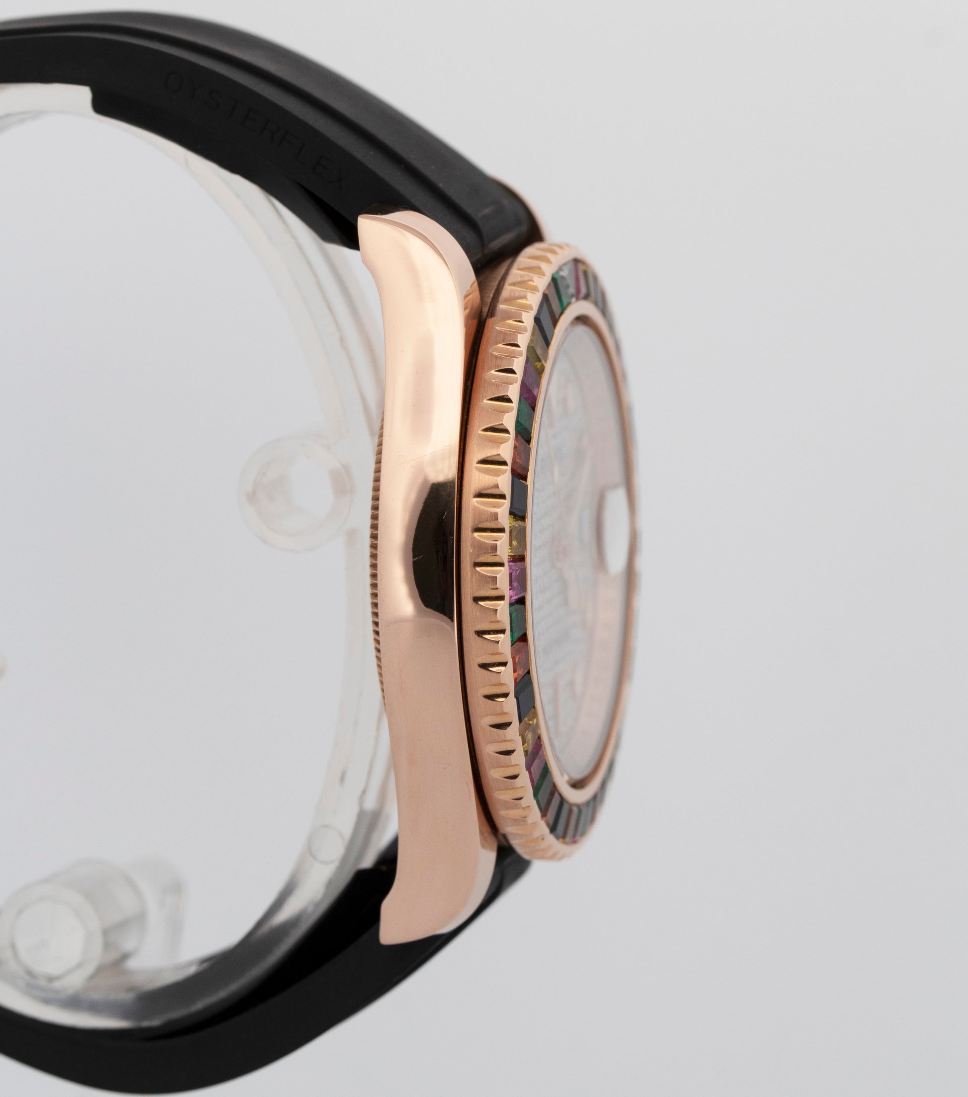 | Band | Black Rubber Oysterflex Strap with an 18K Rose Gold Deployment Clasp |