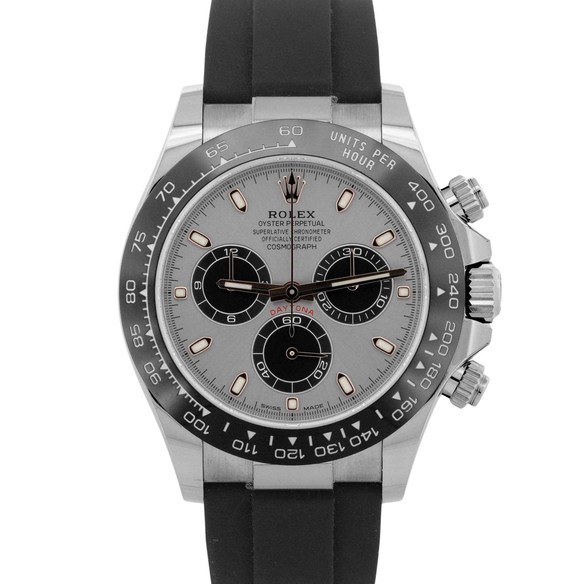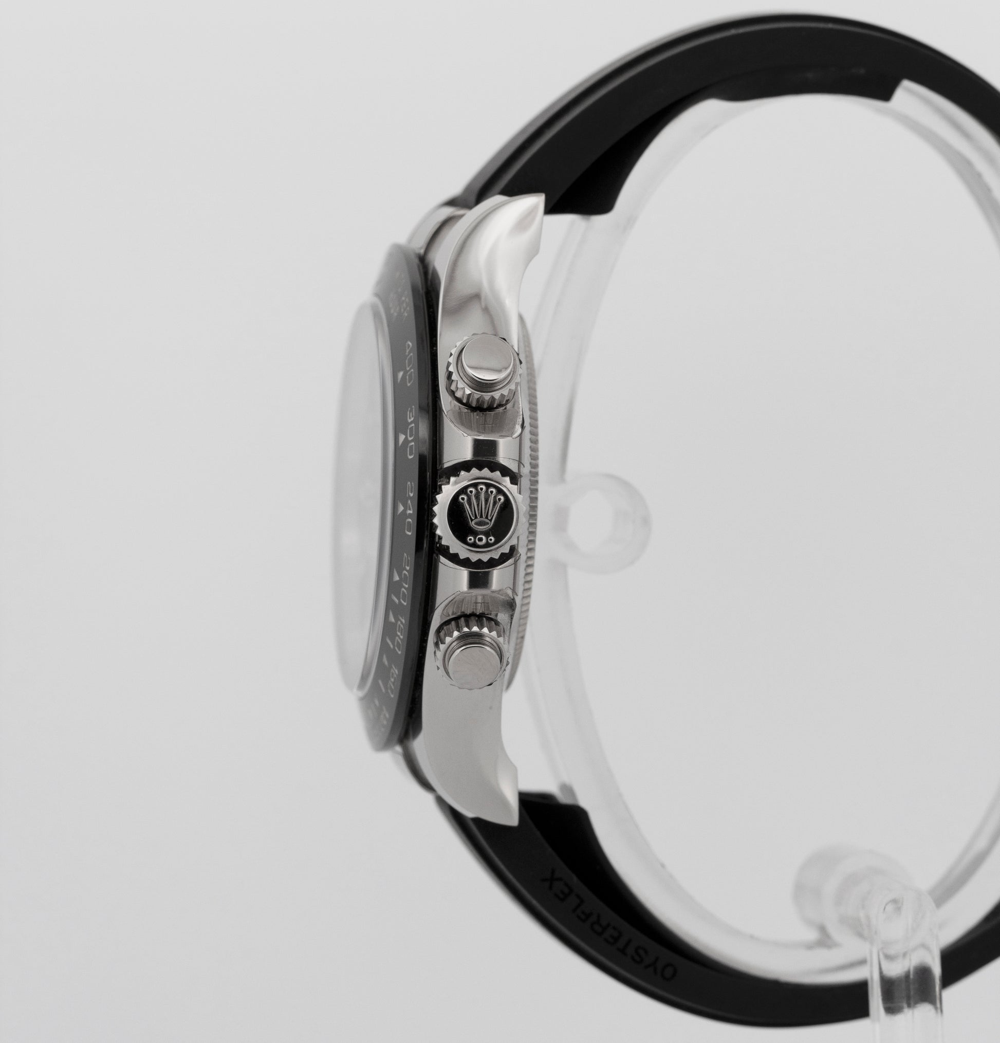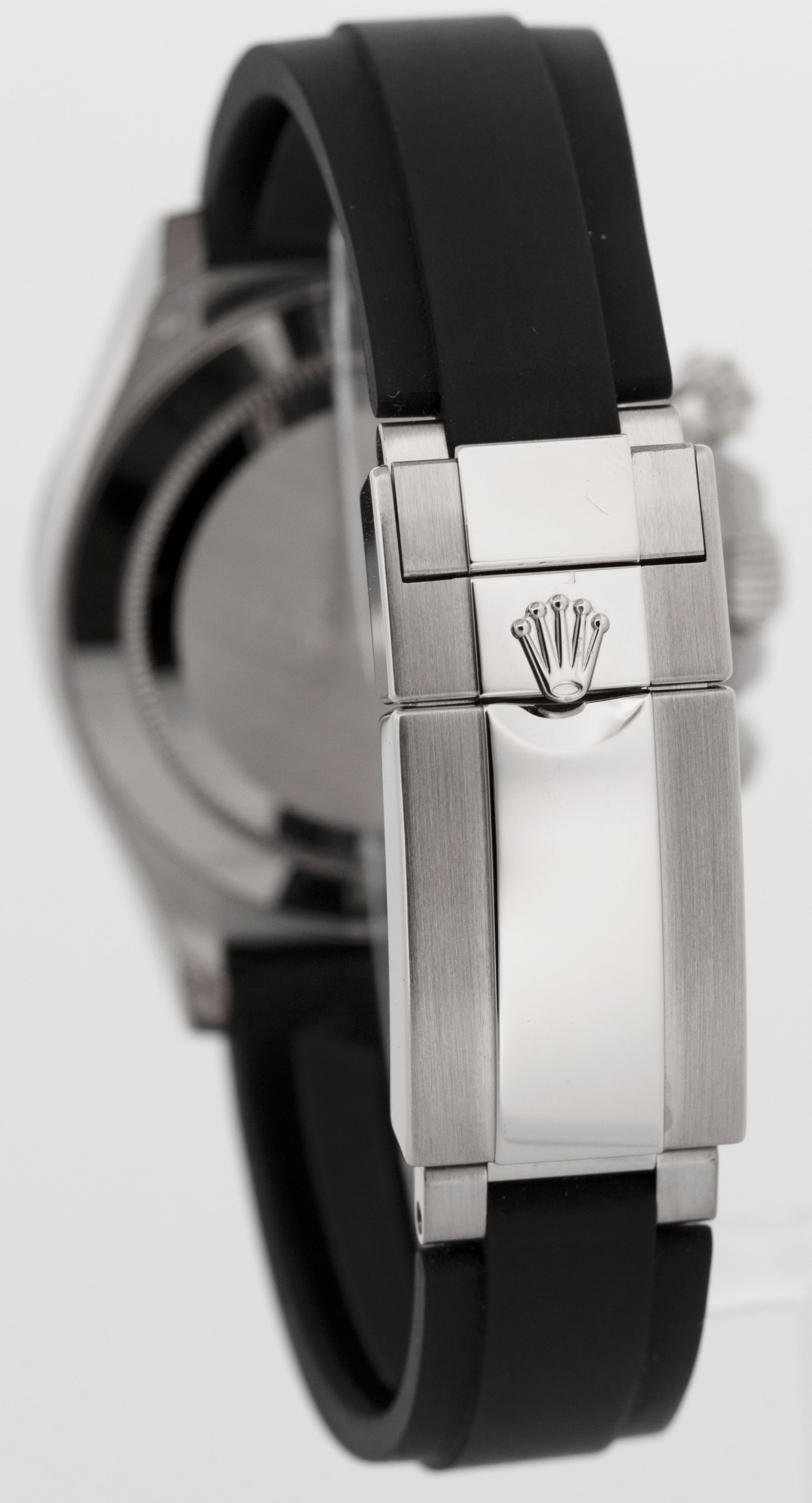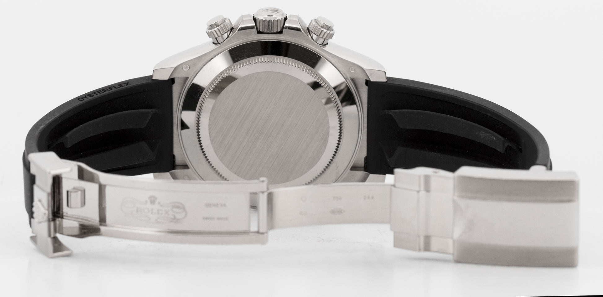 Band Black Rubber 'Oysterflex' Band with an 18K White Gold Flip Lock Deployment Clasp