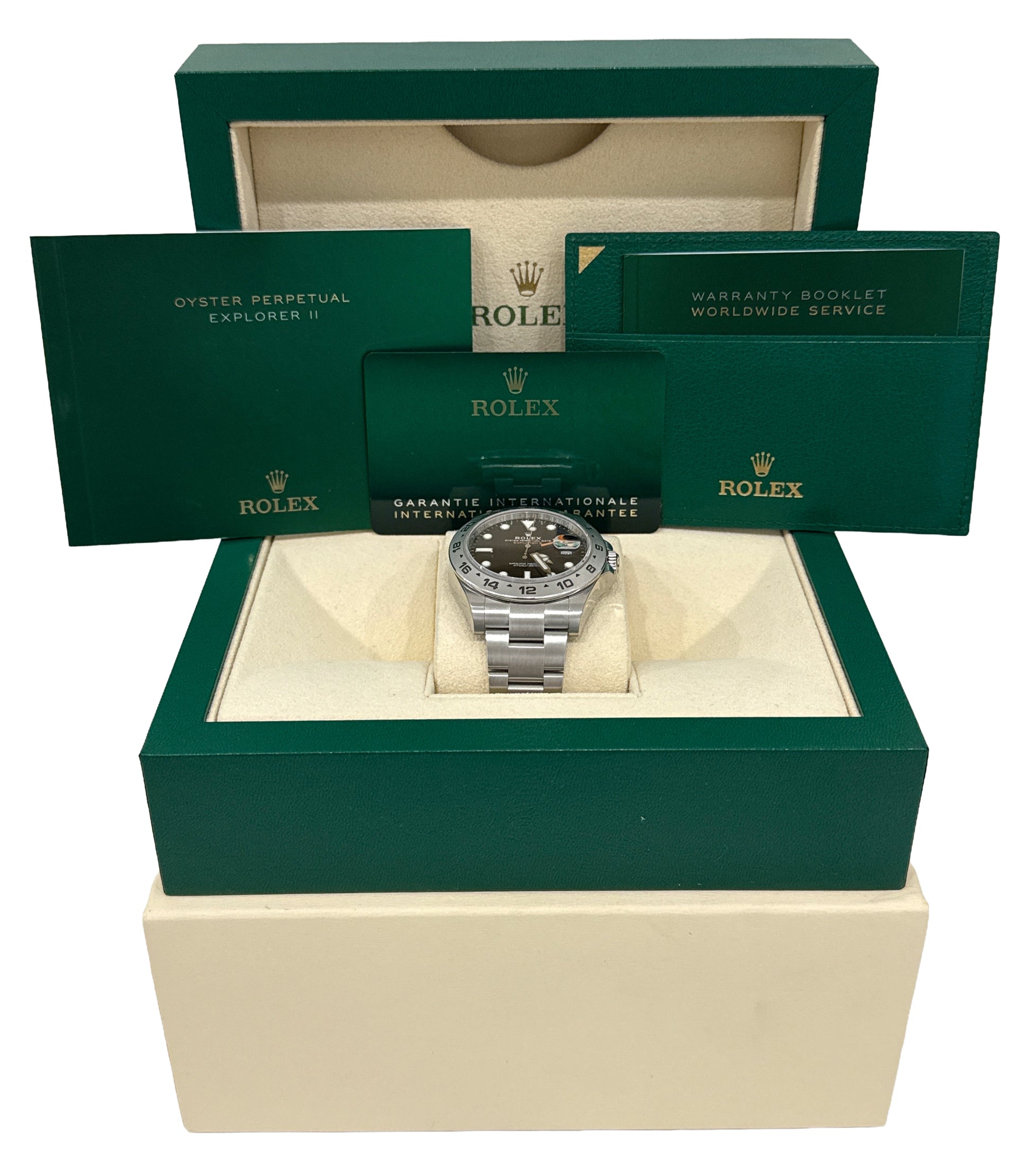 2020 NFC PAPERS Rolex Explorer II 42mm BLACK Orange Stainless Steel 216570 BOX