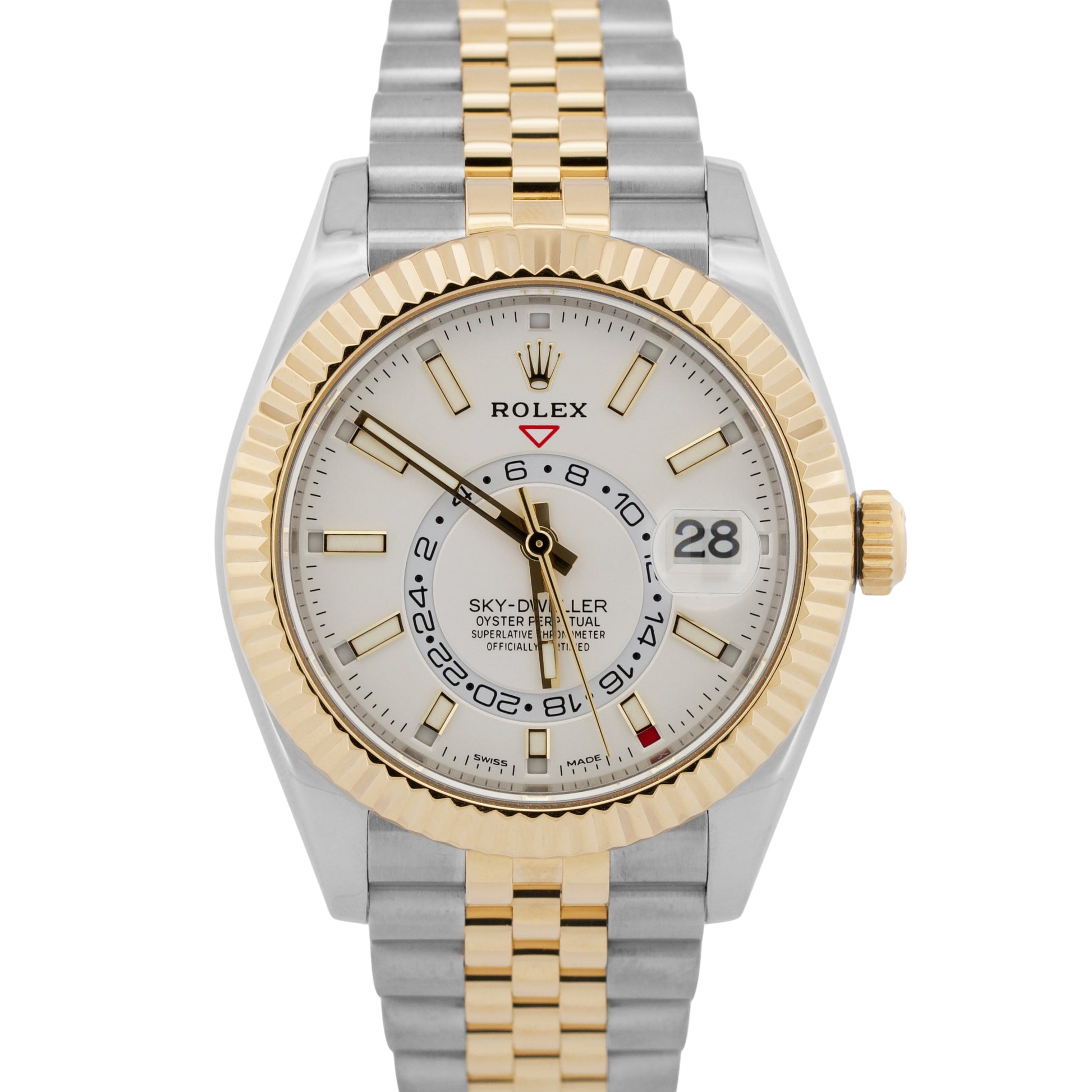 2021 PAPERS Rolex Sky-Dweller WHITE 18K Gold Stainless JUBILEE 42mm 326933 BOX