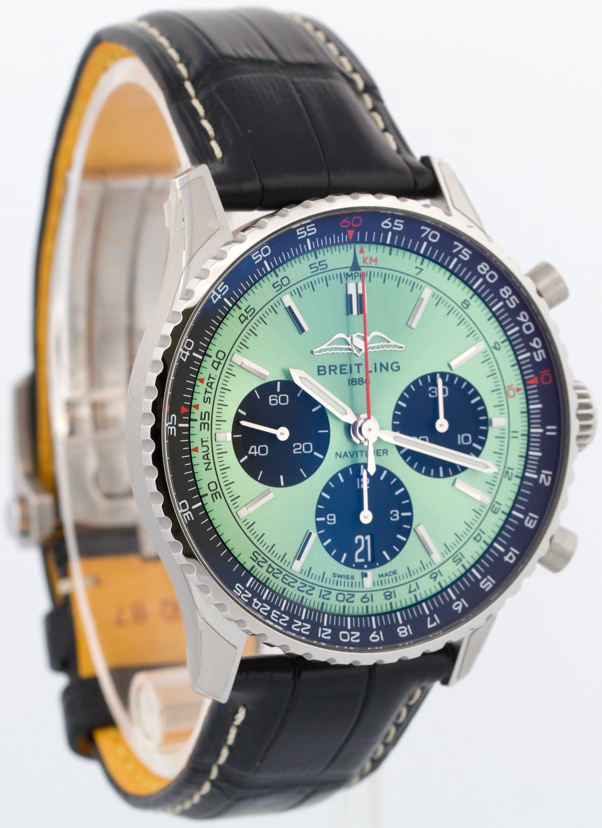 2022 PAPERS Breitling Navitimer B01 TEAL Green 43mm Stainless Leather AB0138 BOX
