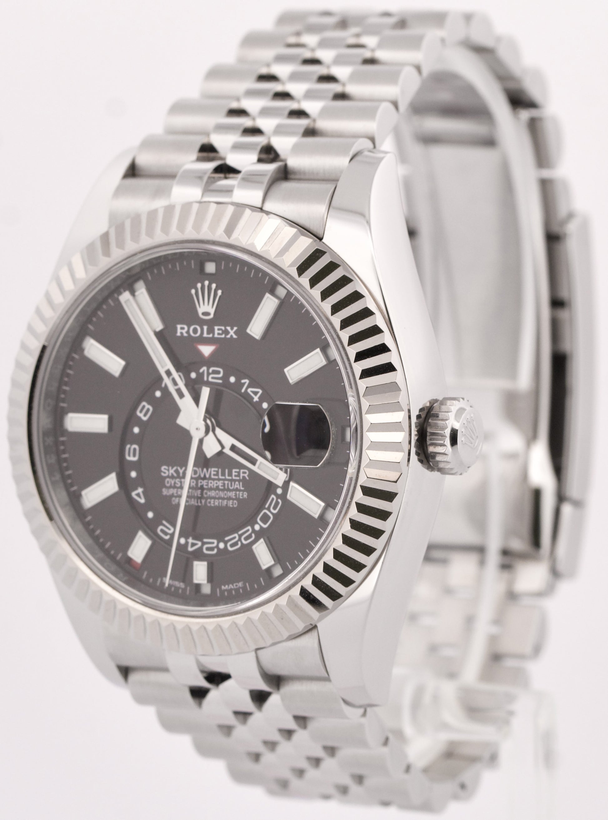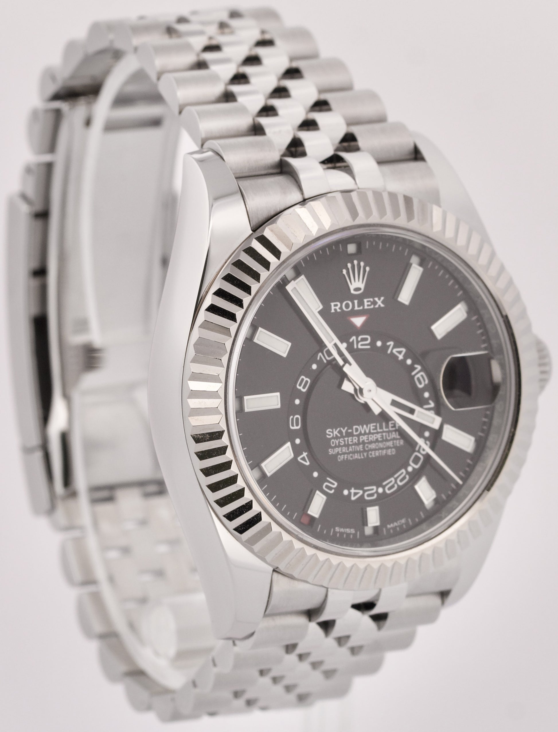 2022 PAPERS Rolex Sky-Dweller BLACK Steel 18K White Gold 42mm JUBILEE 326934 BOX