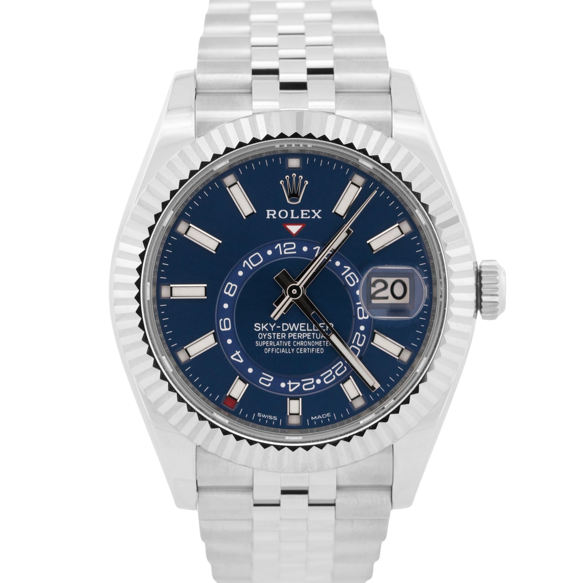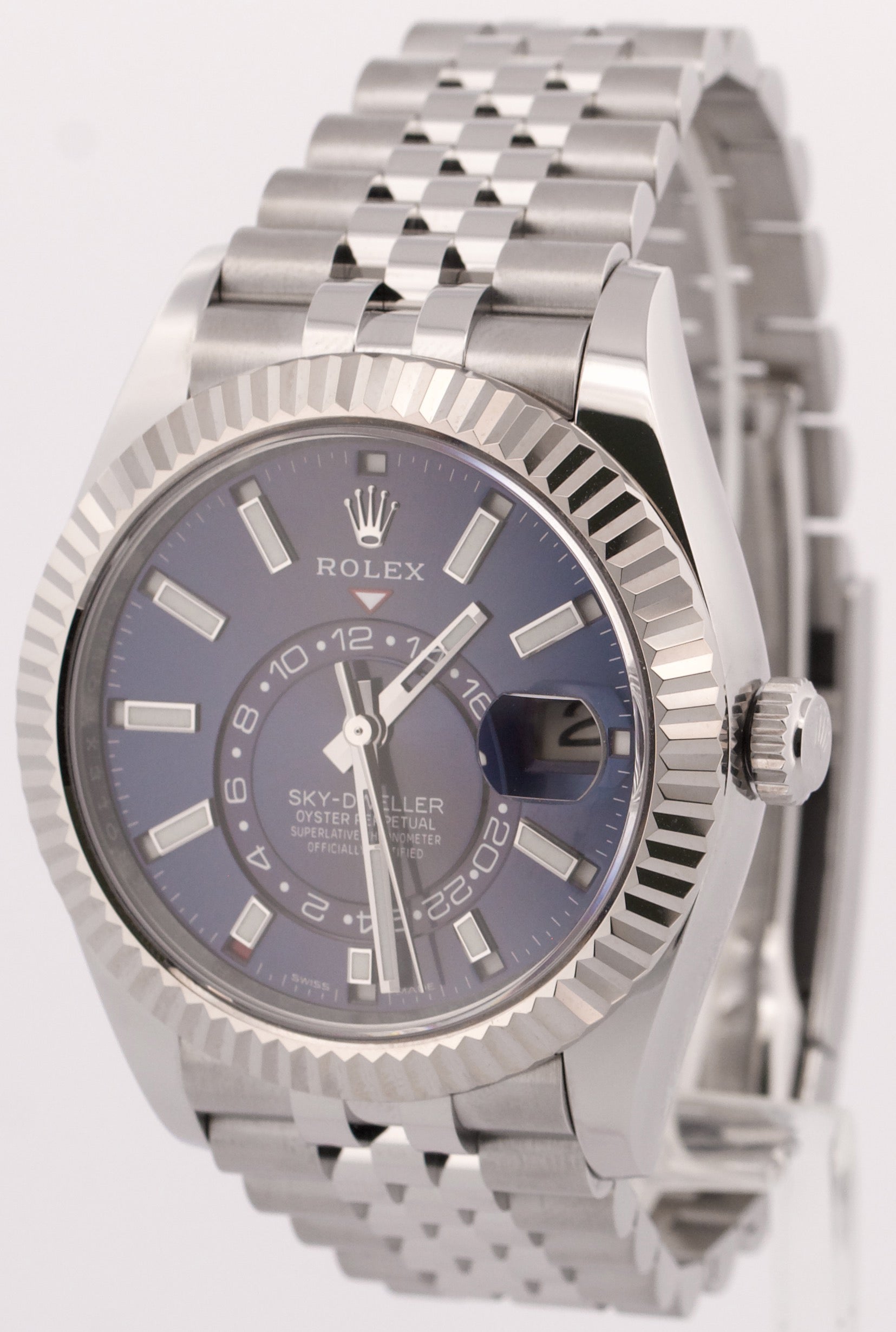2022 PAPERS Rolex Sky-Dweller BLUE Steel 18K White Gold 42mm JUBILEE 326934 BOX