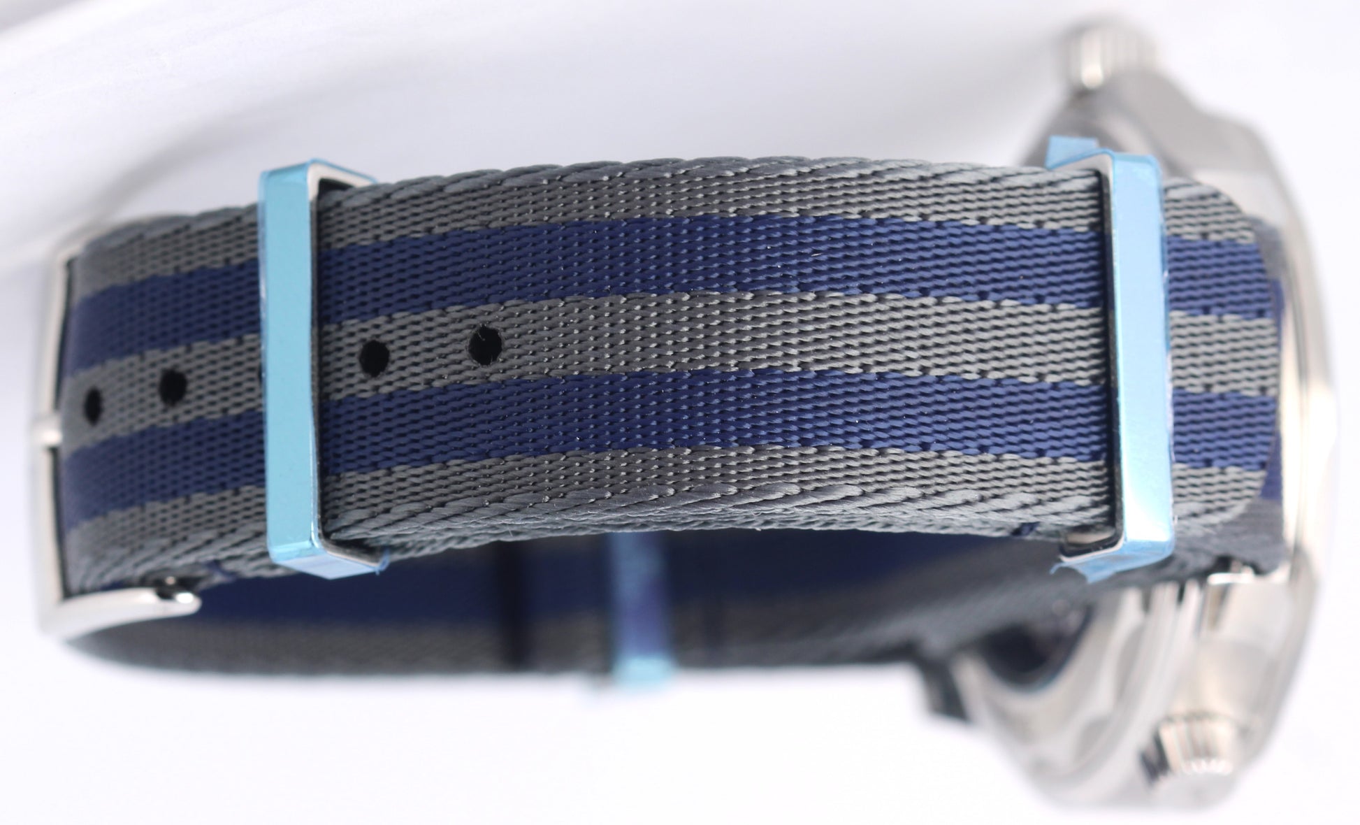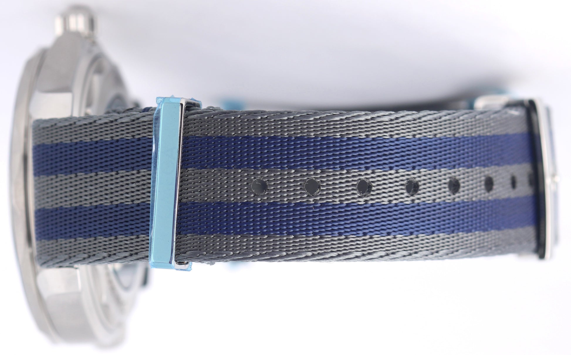 Band | 5 Stripe Blue and Gray NATO Strap (Also Includes it's Omega STICKERED Stainless Steel Bracelet) |