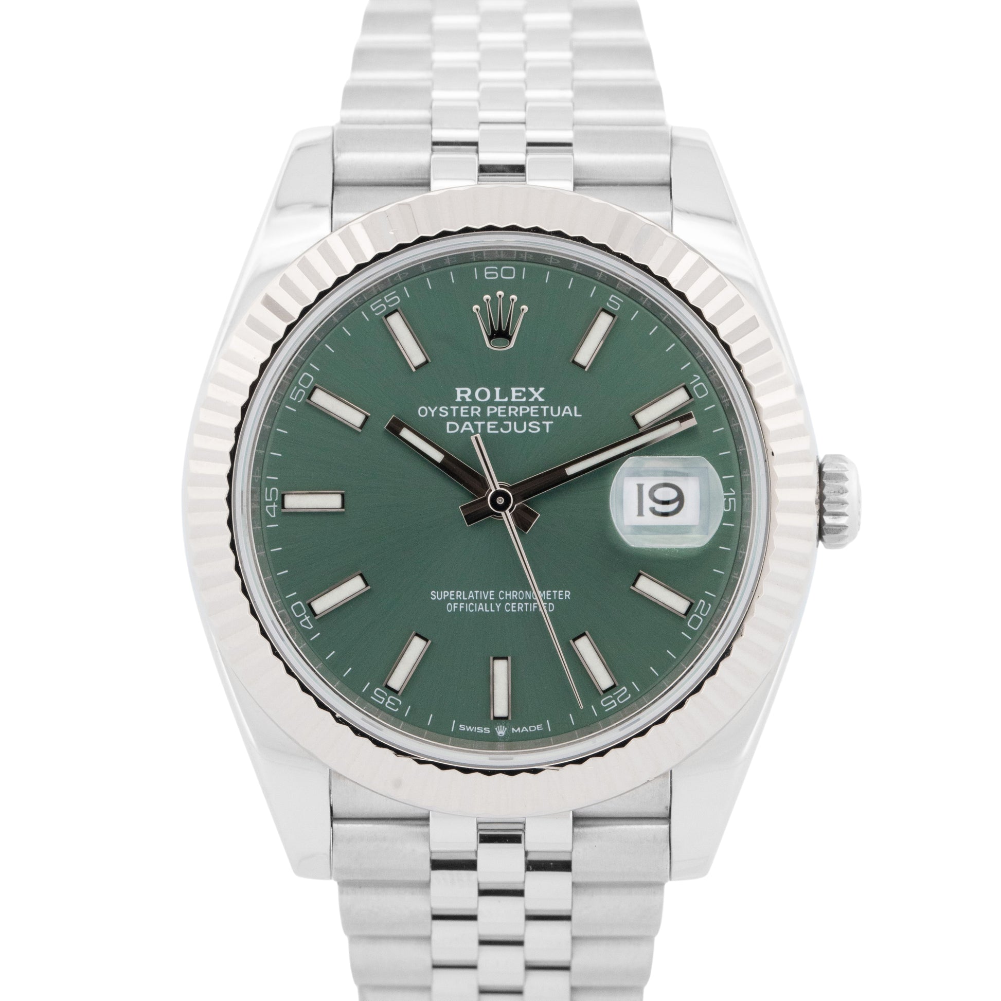 2023 PAPERS Rolex DateJust 41 MINT GREEN 18K Gold 41mm JUBILEE 126334 Watch BOX