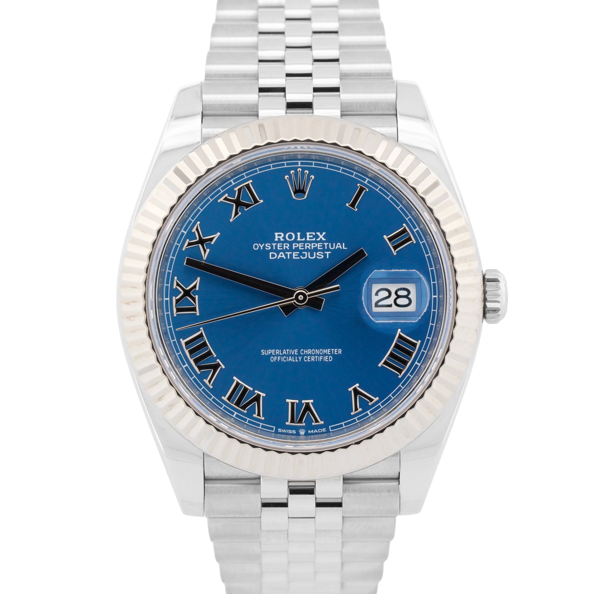 2023 PAPERS Rolex DateJust 41mm AZZURRO BLUE ROMAN 18K Steel JUBILEE 126334 BOX
