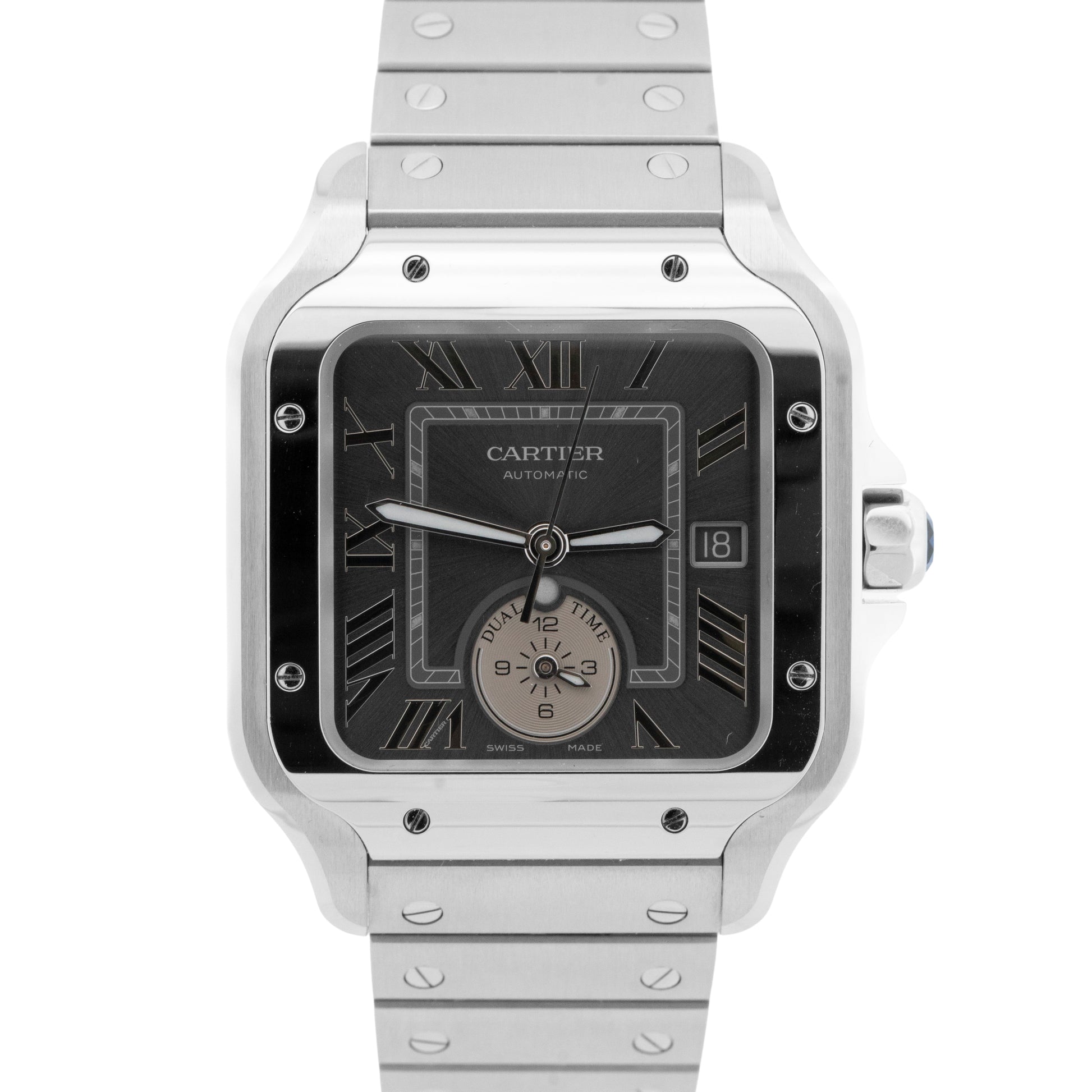 2024 PAPERS Cartier Santos Dual Time 37.7mm Anthracite Gray 4590 WSSA0076 BOX