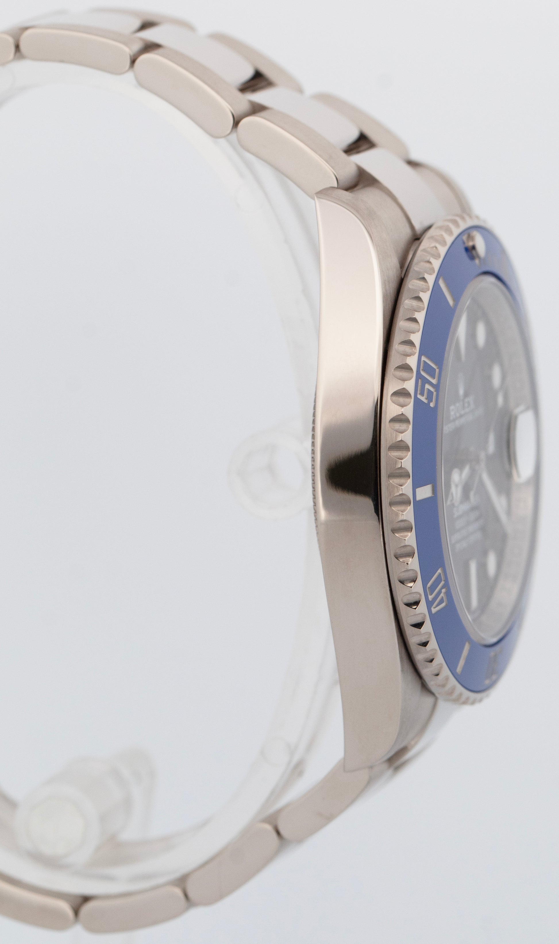 | Bezel | Rotatable Blue Ceramic / 18K White Gold Bezel |
