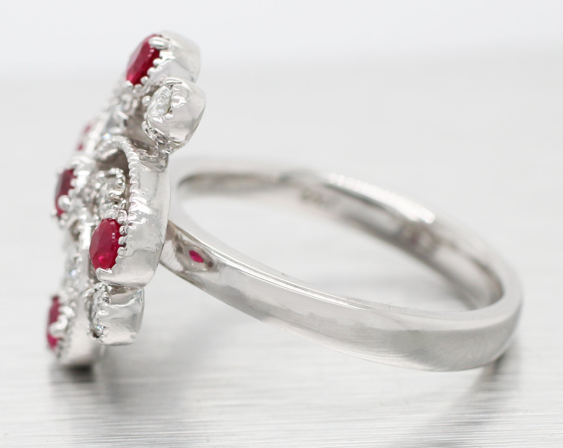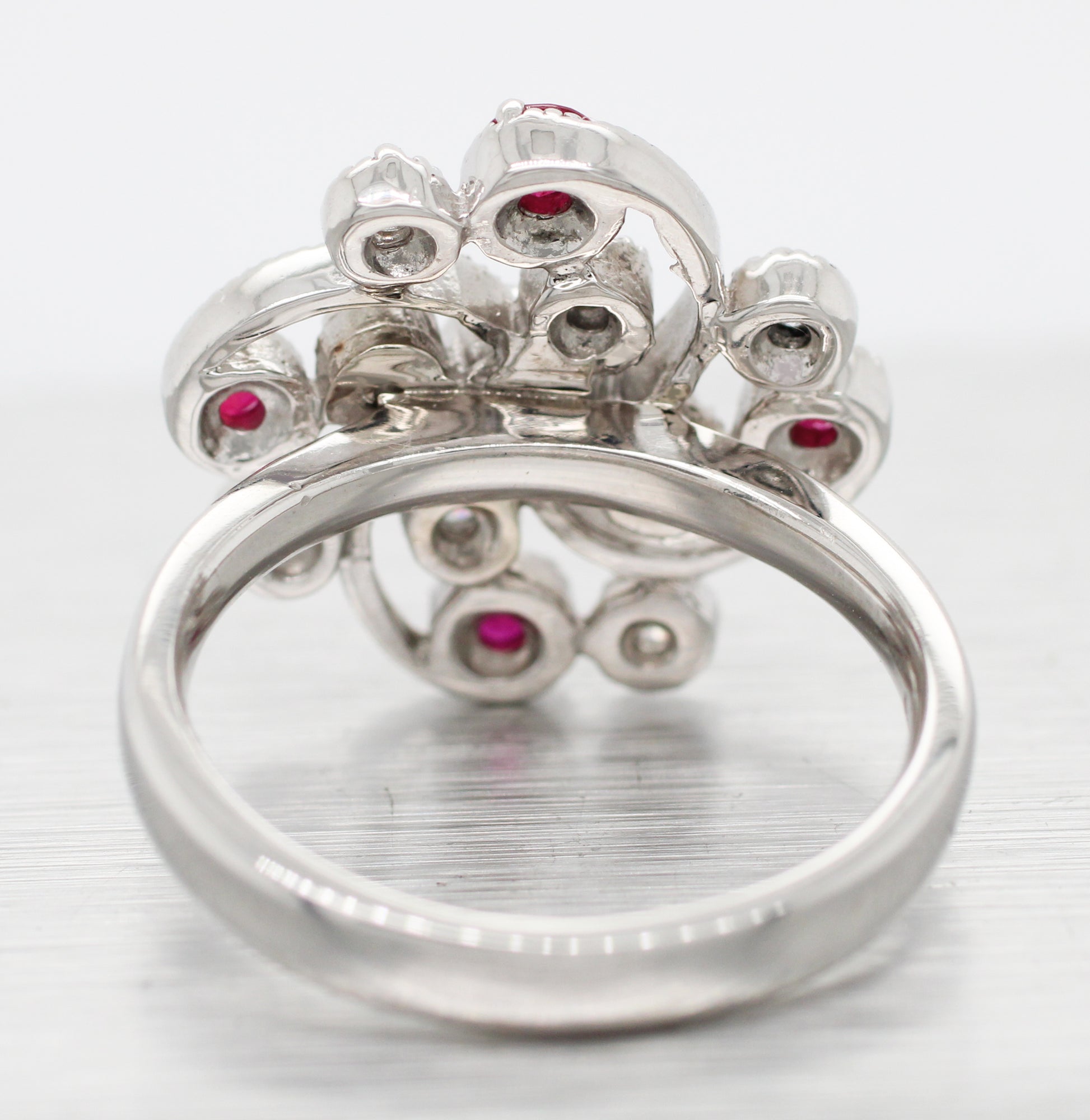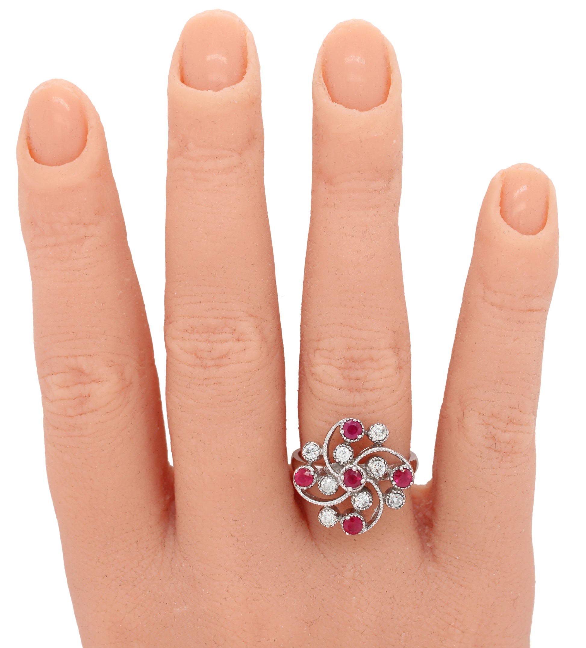 Antique Art Deco 0.30 ctw Ruby & Diamond Swirl Cocktail Ring - 14k White Gold