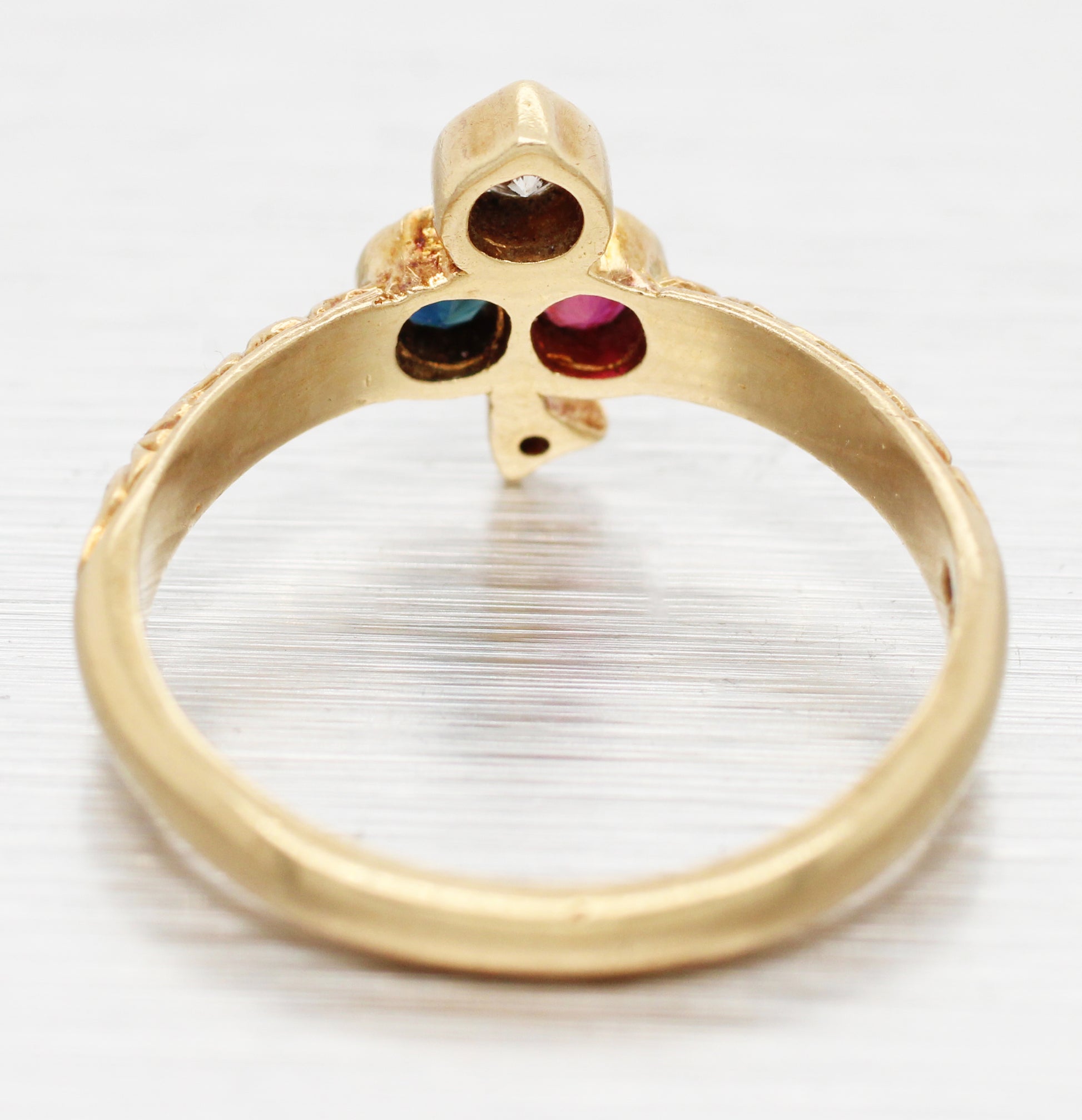 Antique Art Deco Diamond Ruby & Sapphire Club Clover Ring - 14k Yellow Gold Band