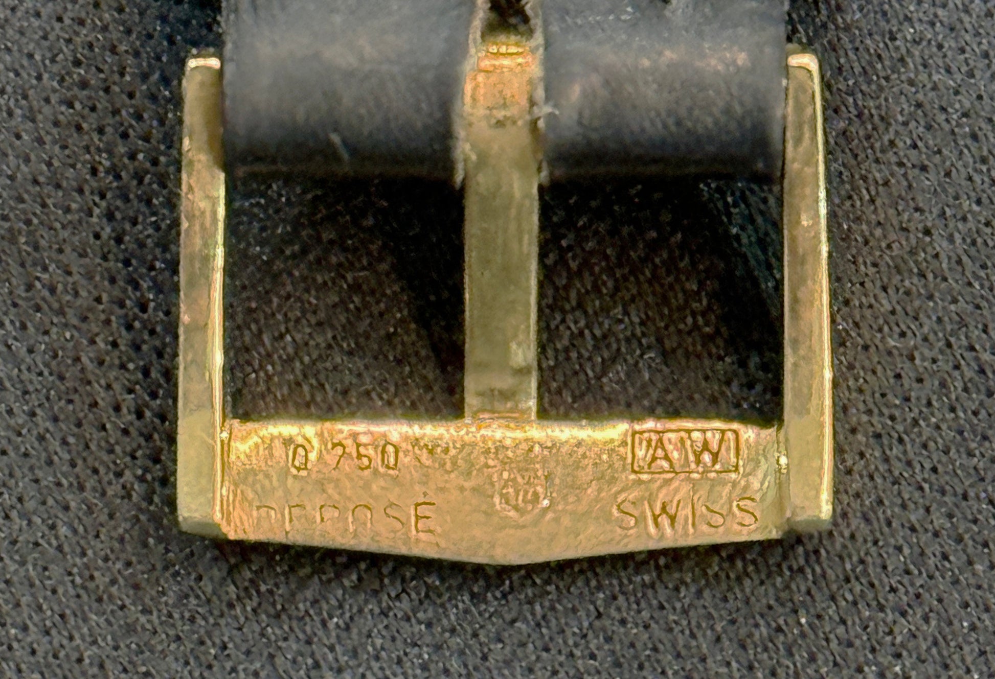 | Band | Black Leather Strap with 18K Yellow Gold Tang Buckle |