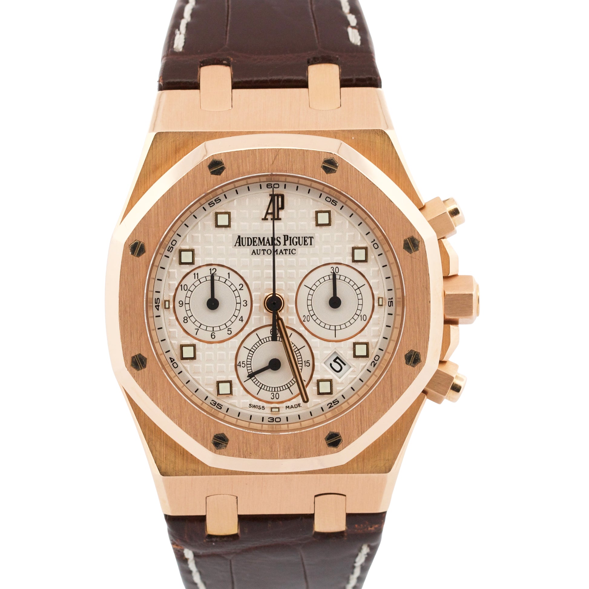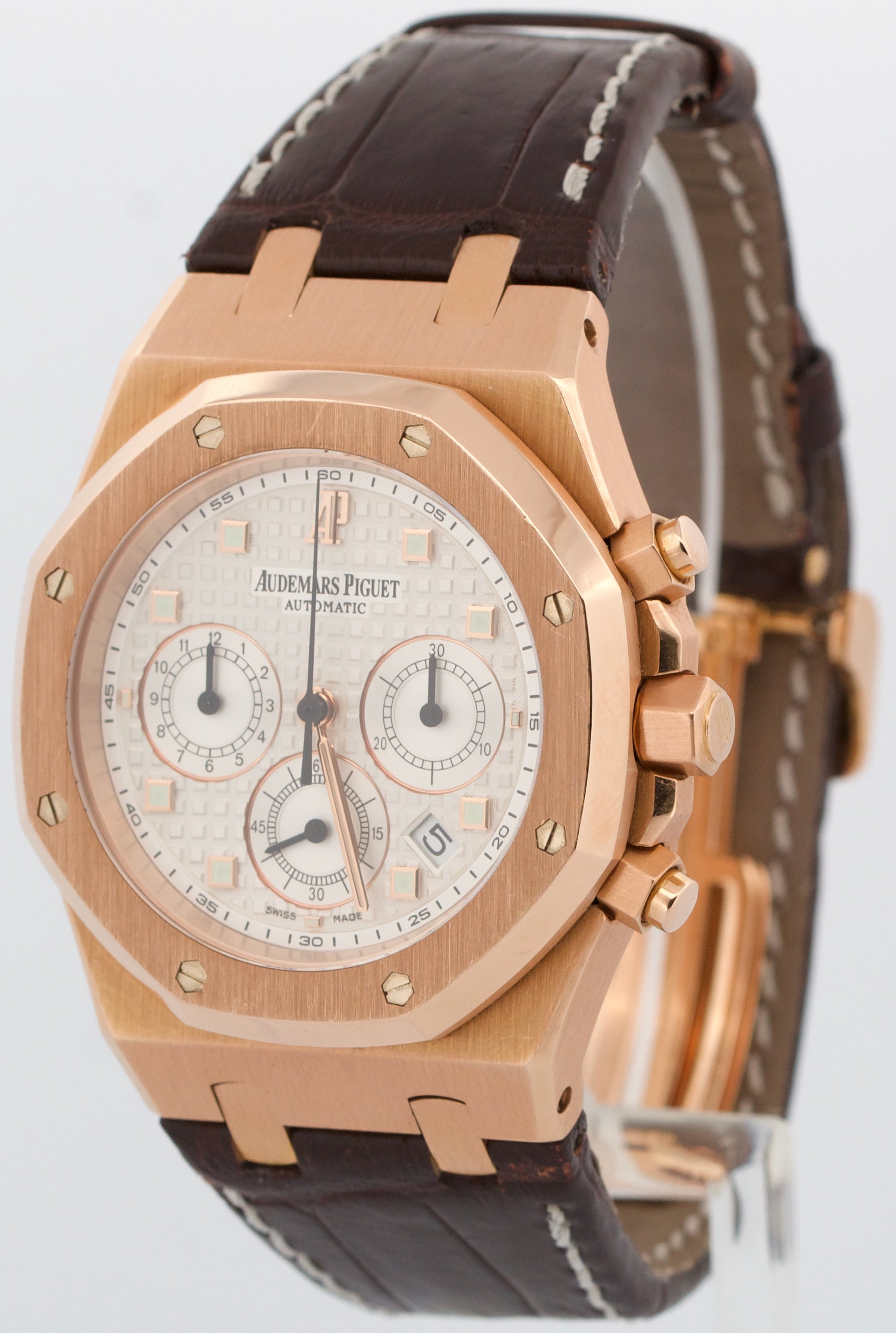 Audemars Piguet Royal Oak Chronograph WHITE 18k Rose Gold Leather 39mm 26022OR