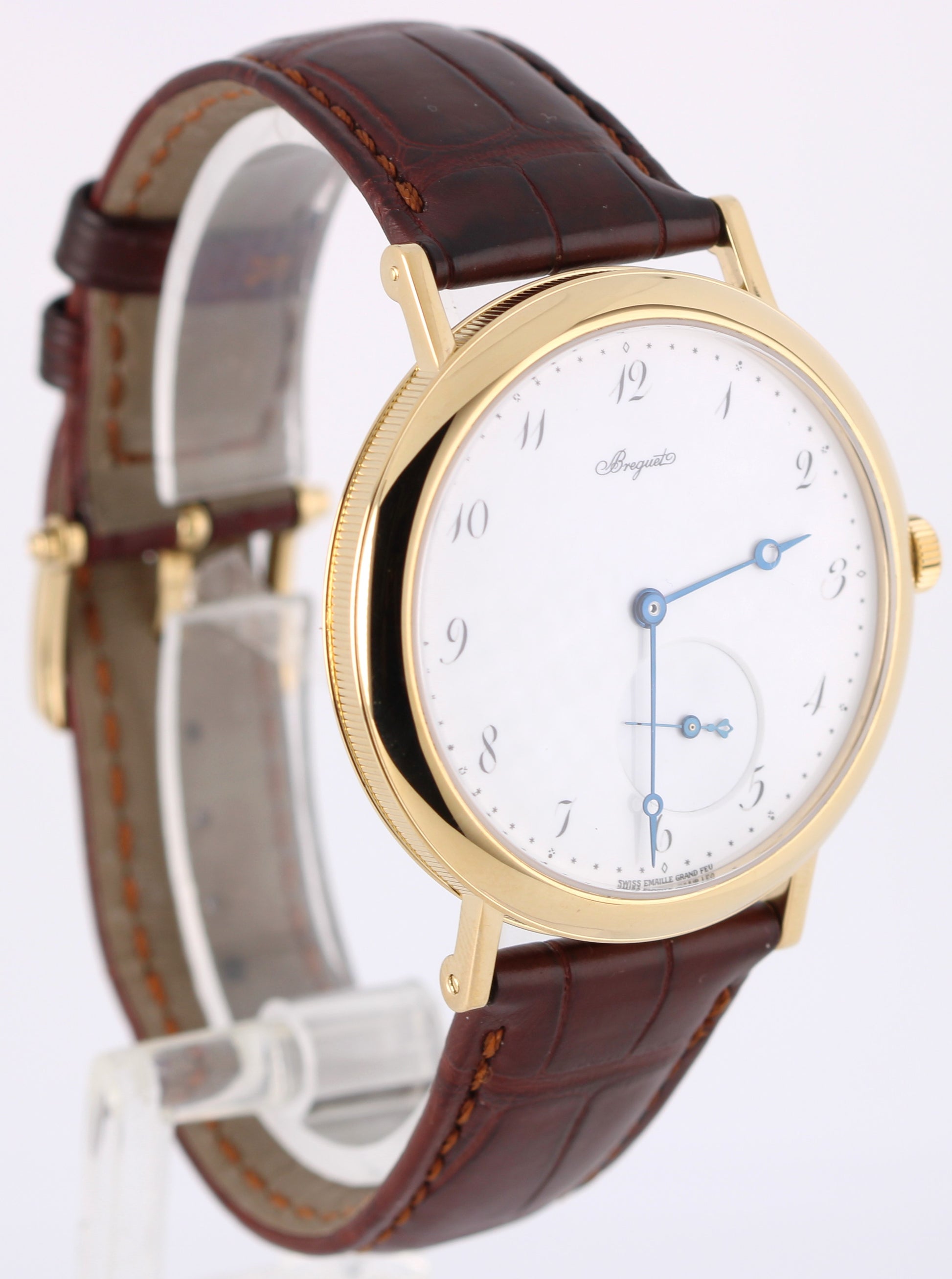 Breguet Classique Automatic 18k Yellow Gold White Arabic 40mm 5140 Leather Watch