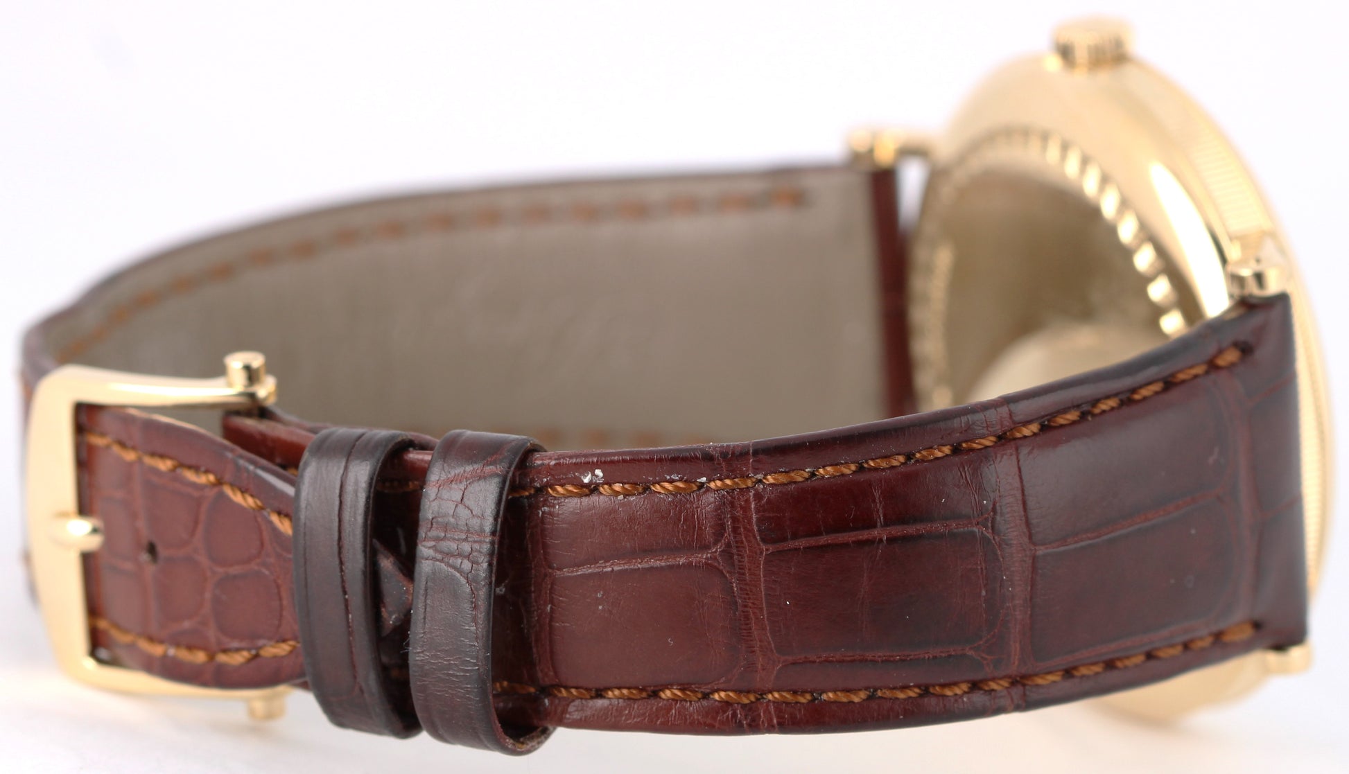 | Band | Brown Leather Strap with 18K Yellow Gold Buckle |
