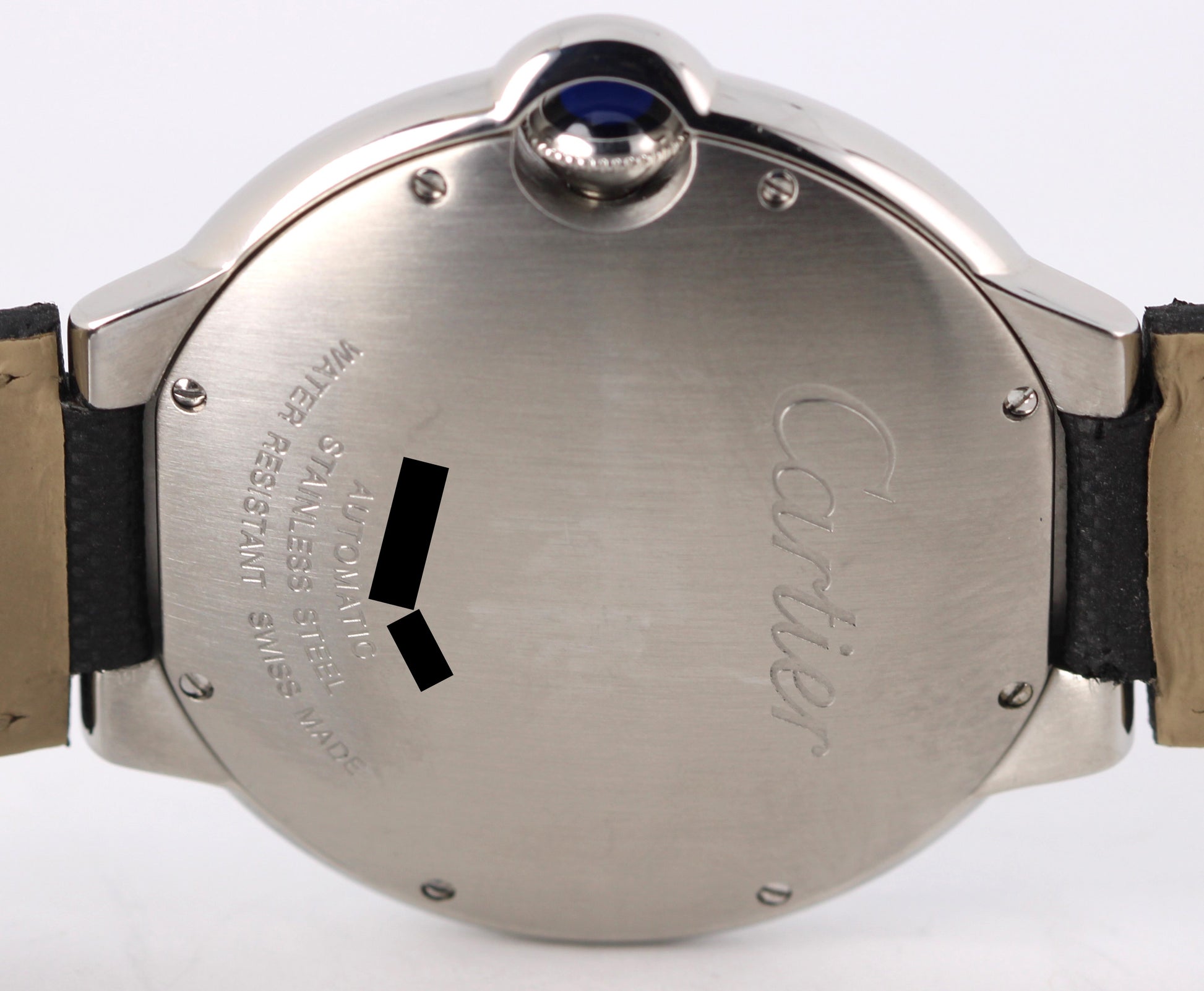 Cartier Ballon Bleu Steel Black Roman Numeral Guilloche 42mm 3765 Watch BOX