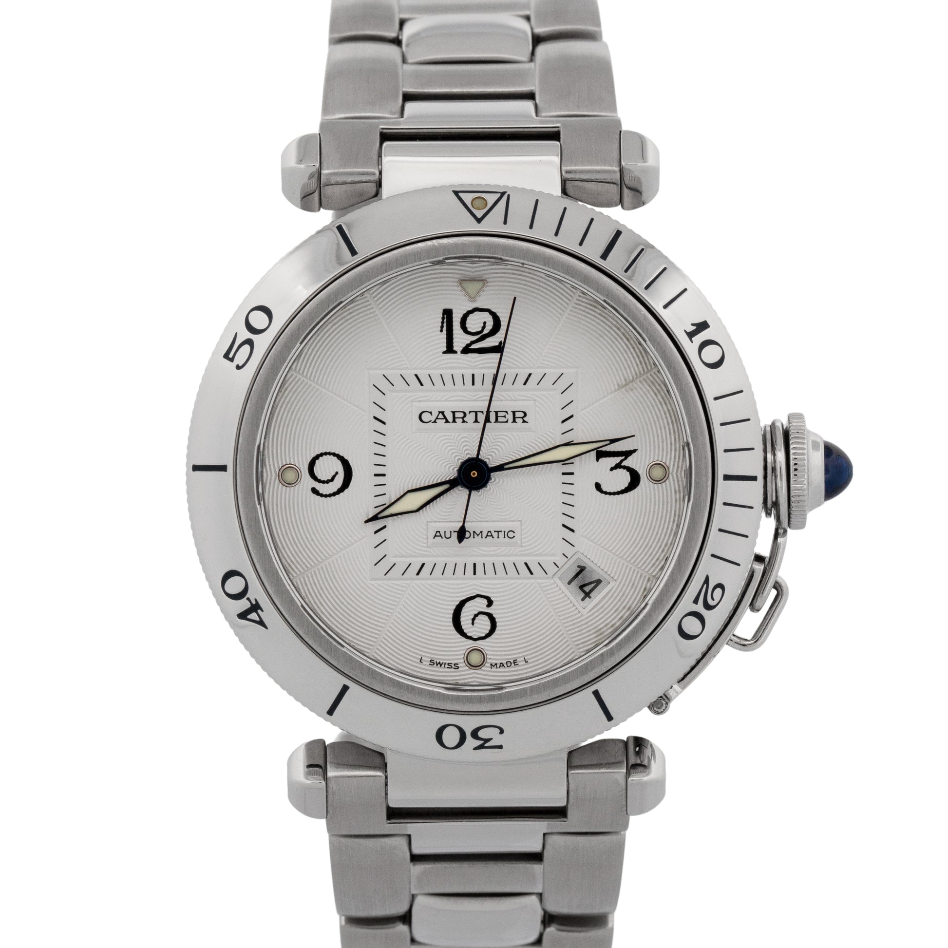 Cartier Pasha 38mm WHITE ARABIC Stainless Steel Automatic Watch 2379 / W31040H3