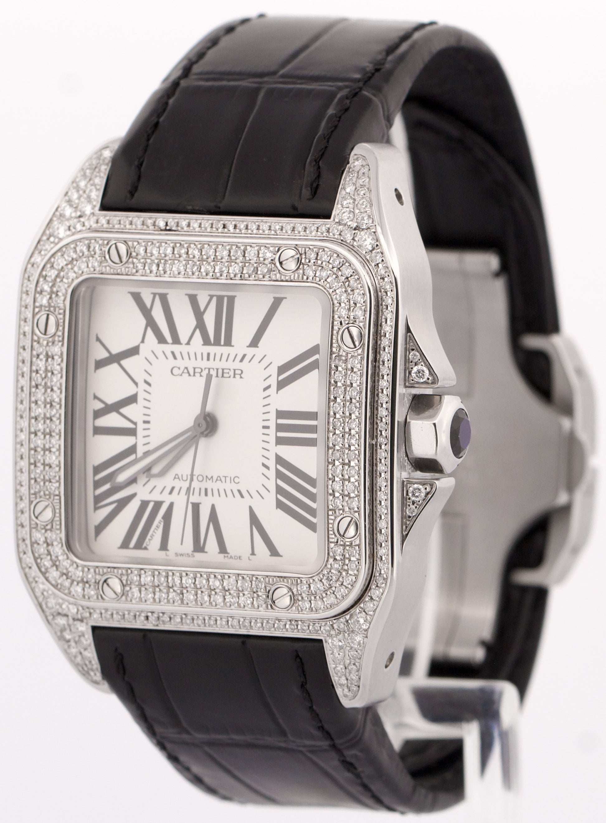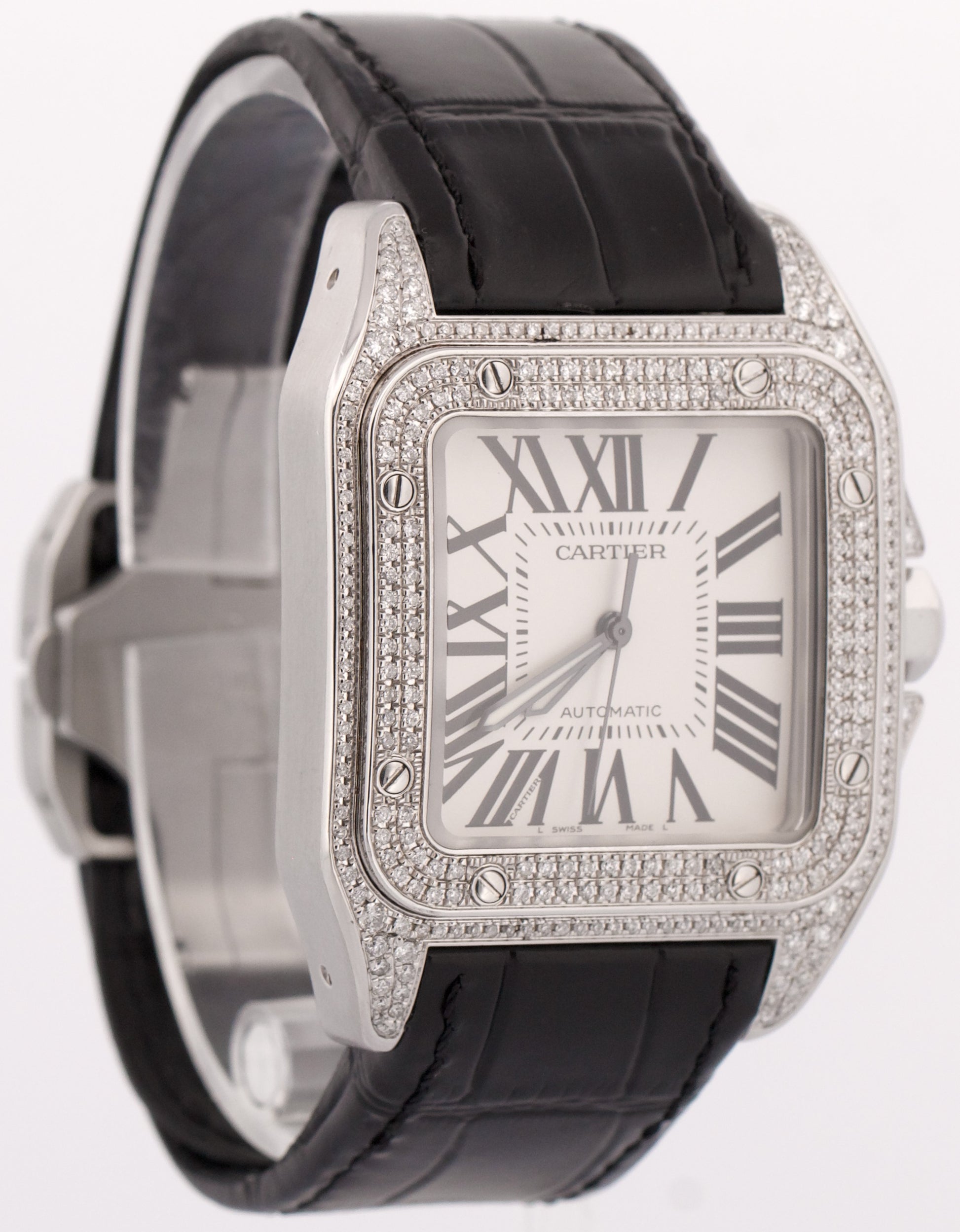 Cartier Santos 100 XL PAVE DIAMOND Stainless Steel Leather 38mm 2656 W20073X8