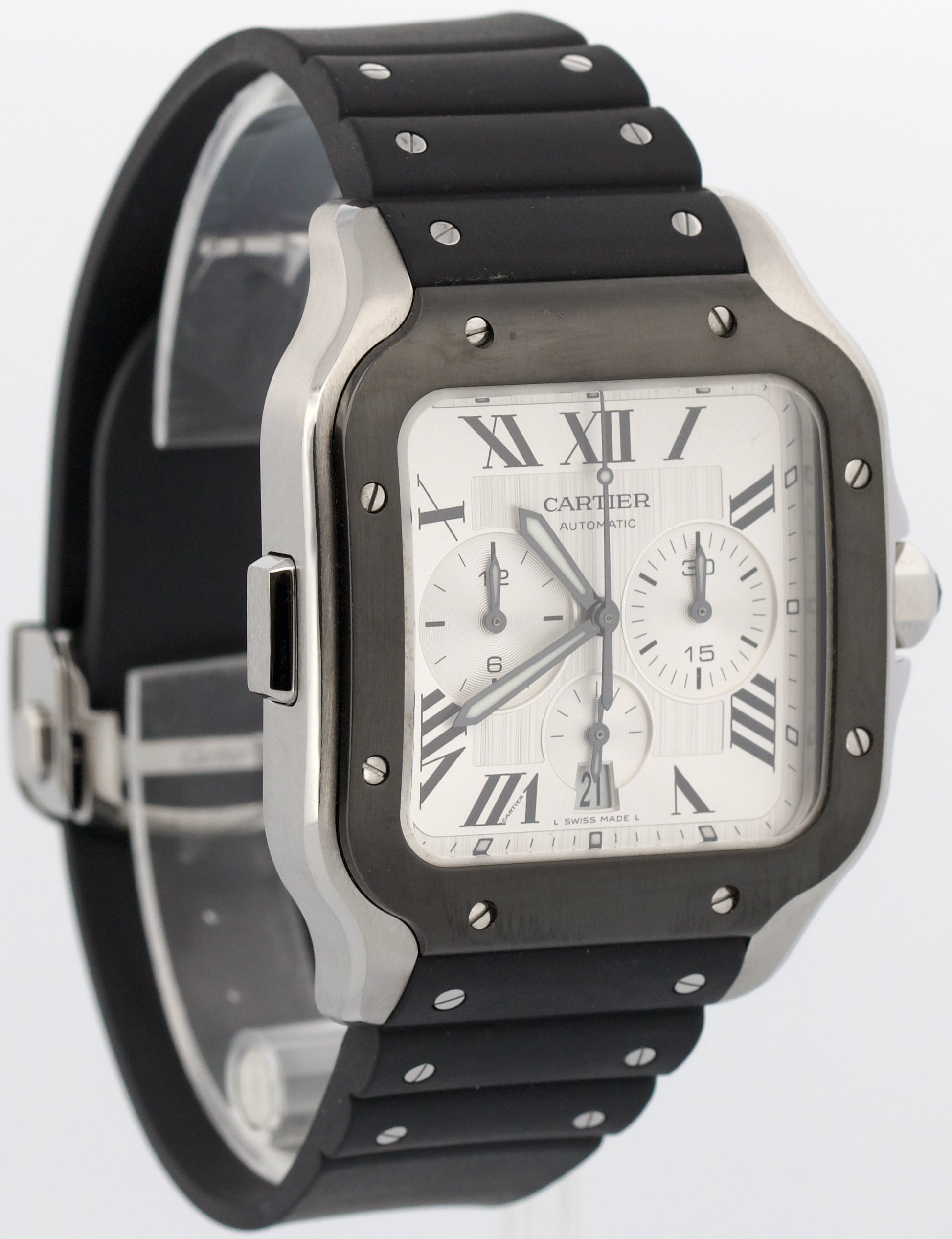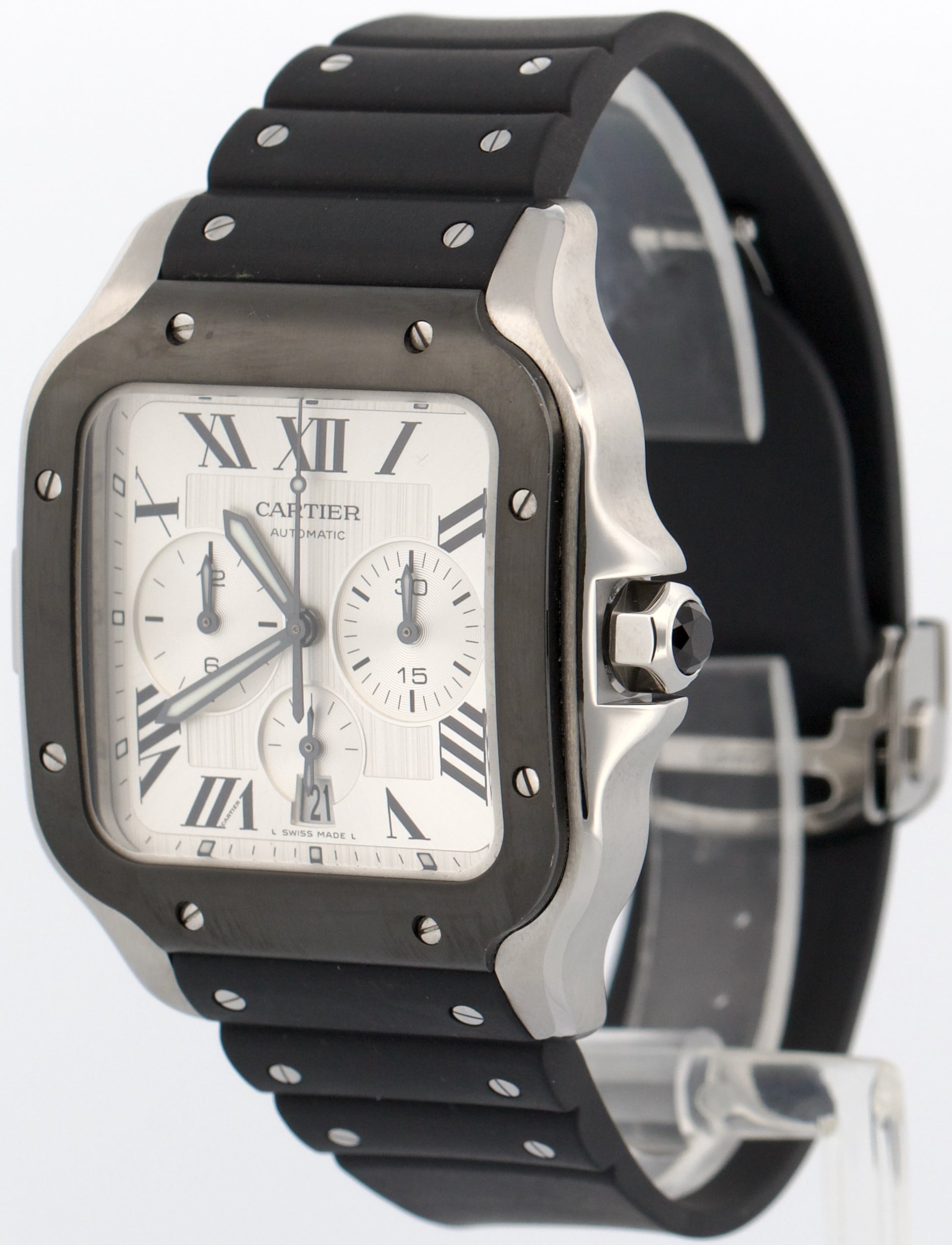 Cartier Santos Chronograph Steel ADLC Silver Rubber 43mm WSSA0017 4183 Watch