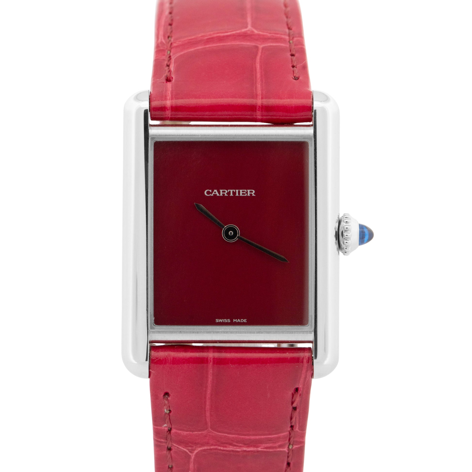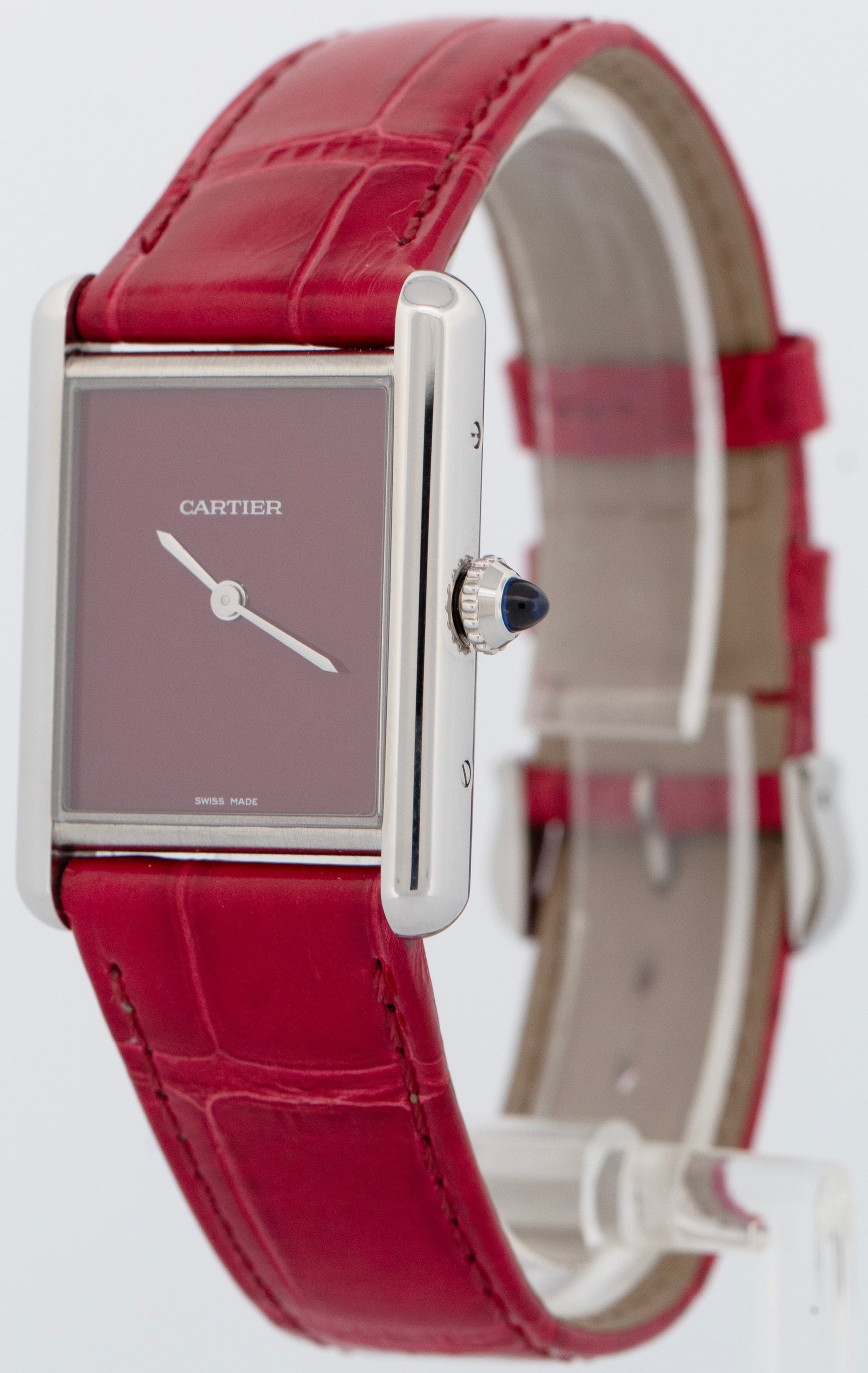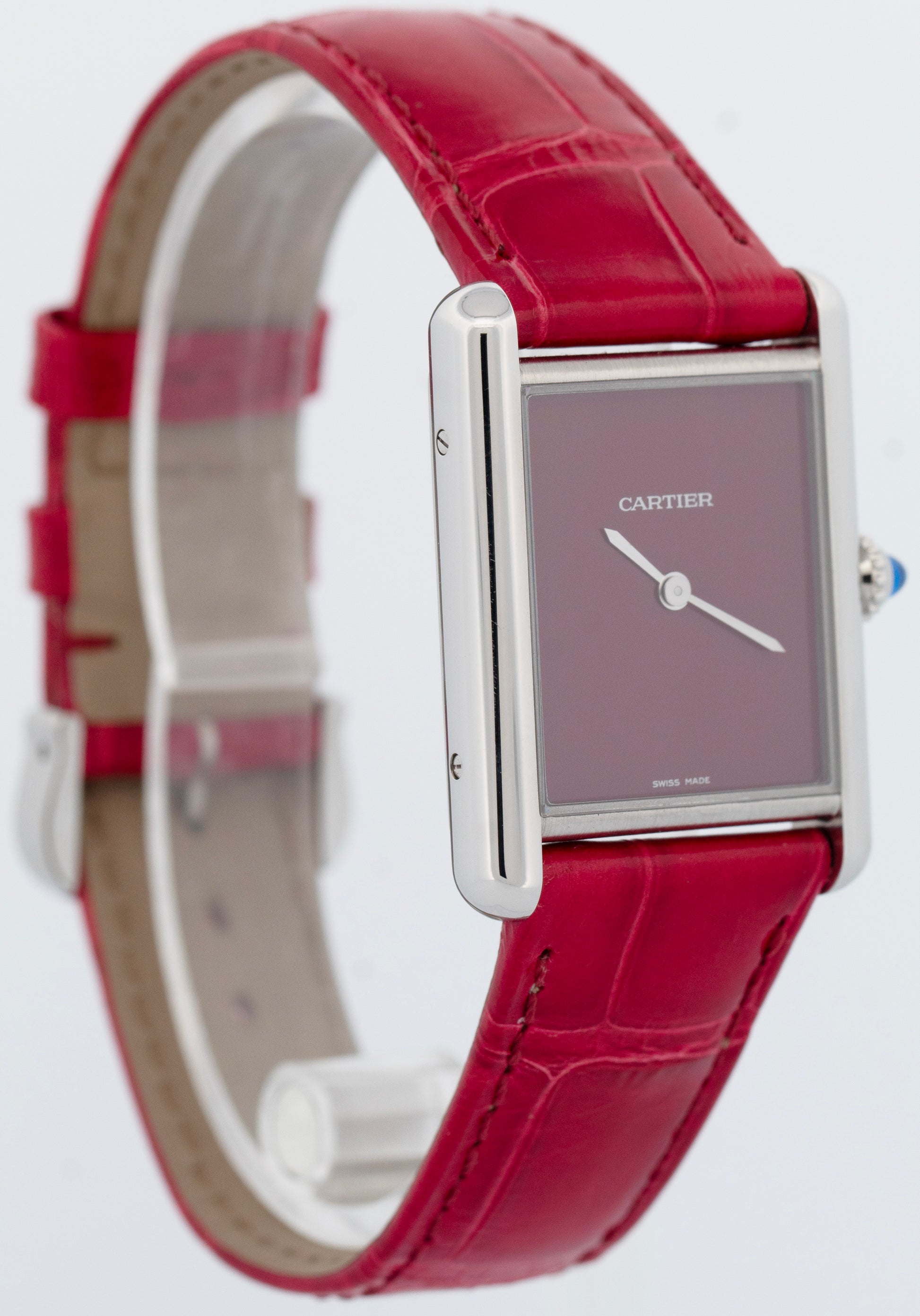 Cartier Tank Must Large Red Quartz 33mm Stainless Steel Watch 4323 / WSTA0054