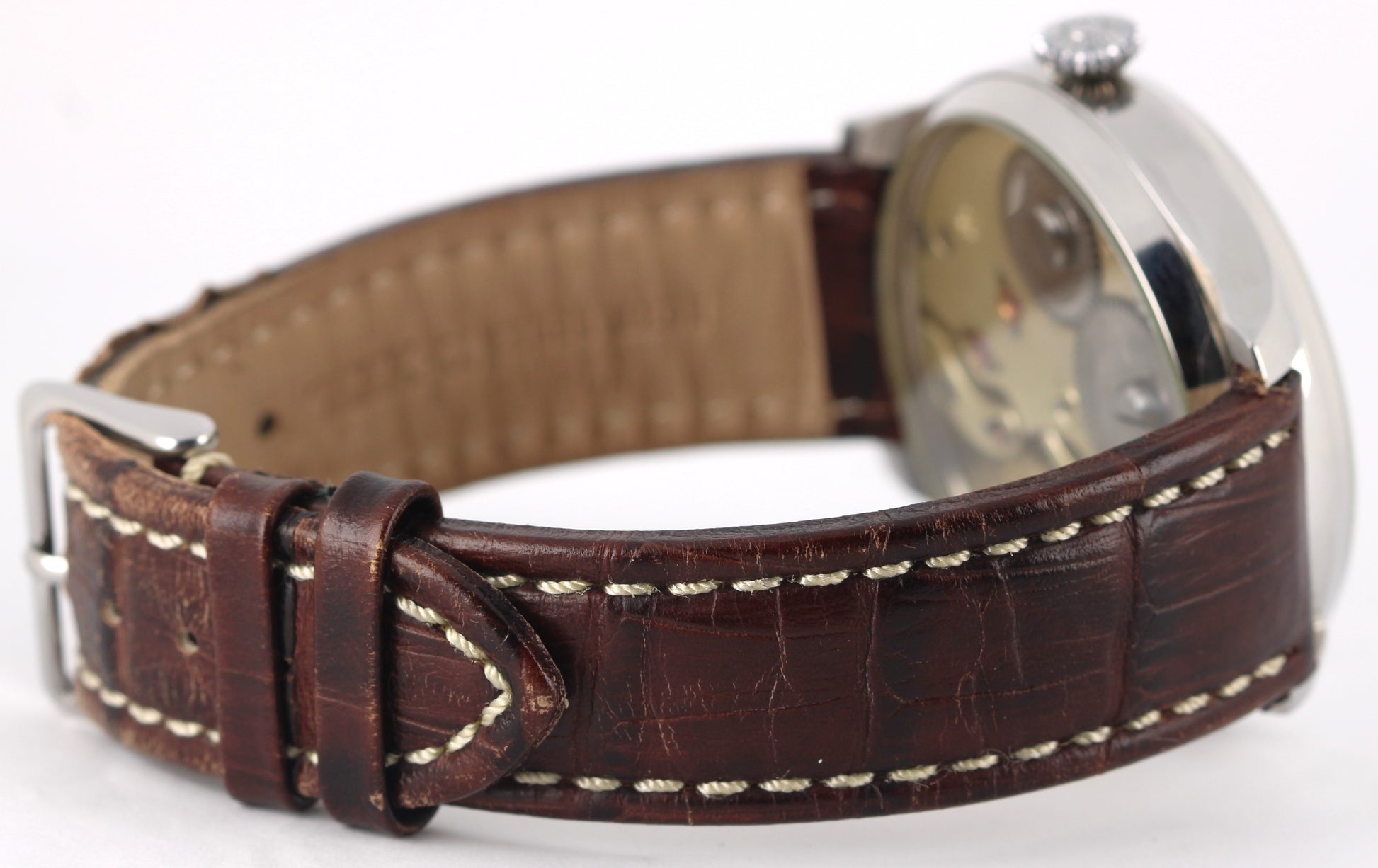 IWC Conversion Pocketwatch Stainless Steel Silver 47.5mm Brown Leather Watch