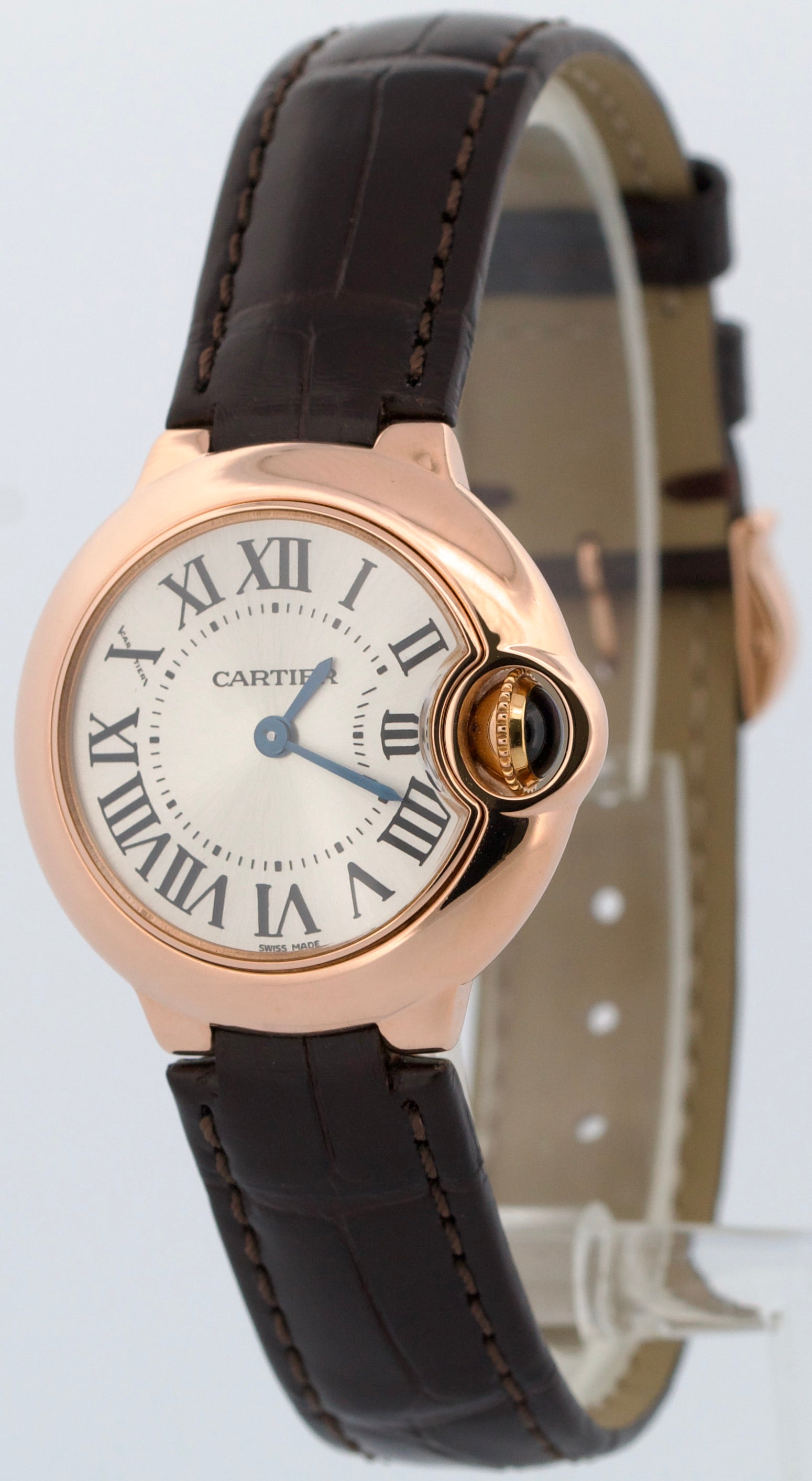 Ladies Cartier Ballon Bleu SILVER 18K Gold 28mm Leather Quartz 3007 W6900256