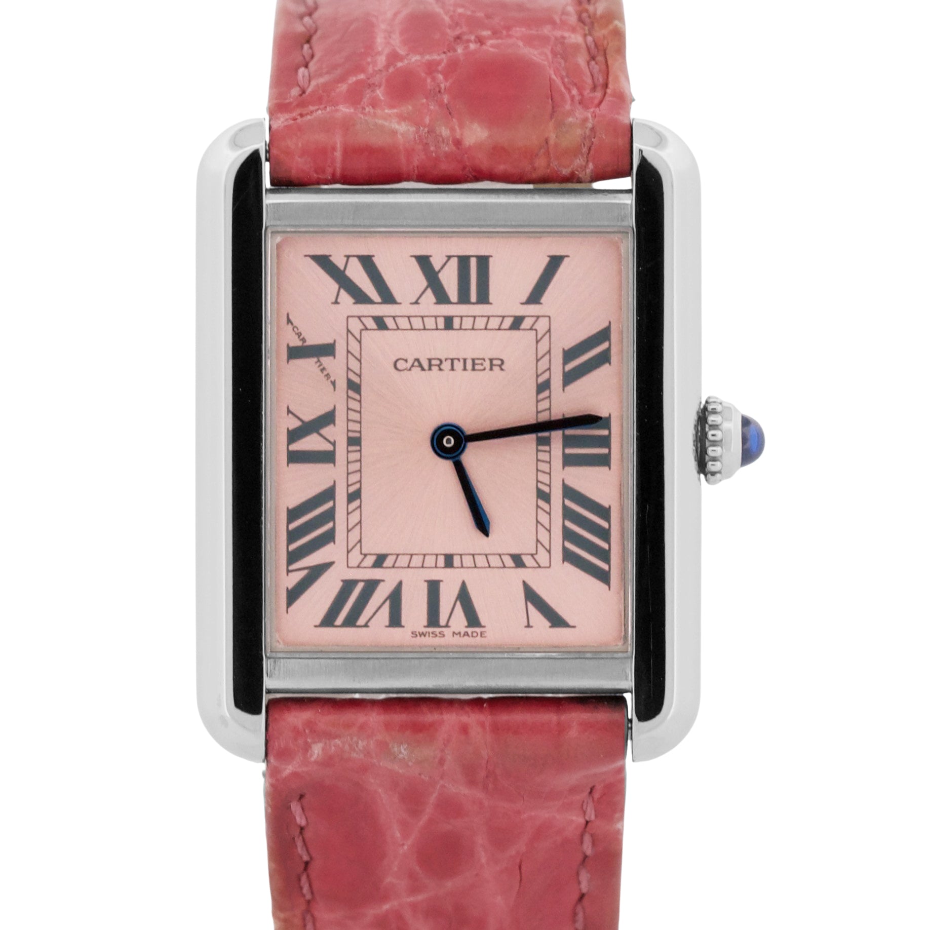 Ladies Cartier Tank Solo PINK Steel 31mm x 23mm Quartz Leather 3170 / W5200000