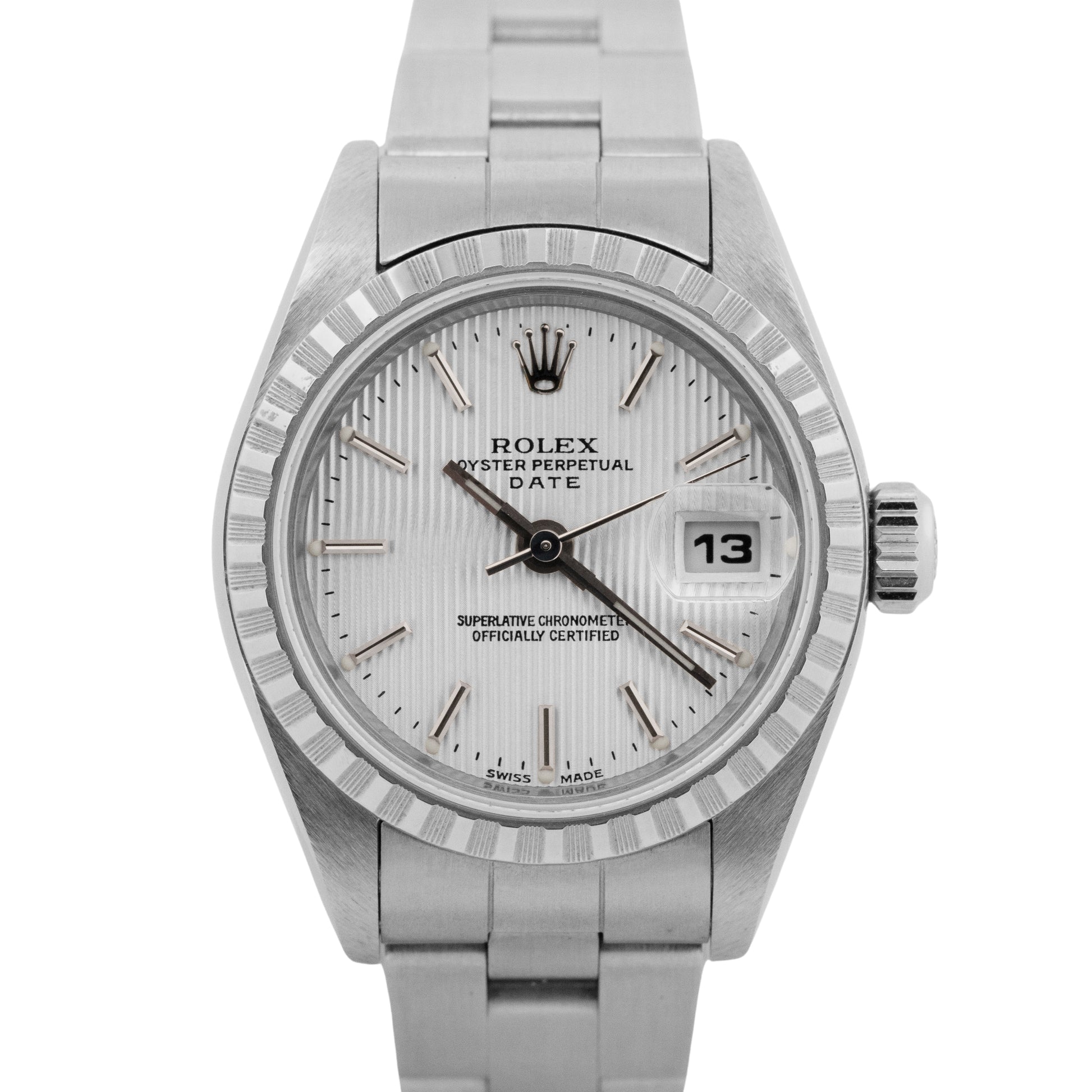 Ladies Rolex DateJust Silver TAPESTRY 26mm 79240 Stainless Steel Watch BOX