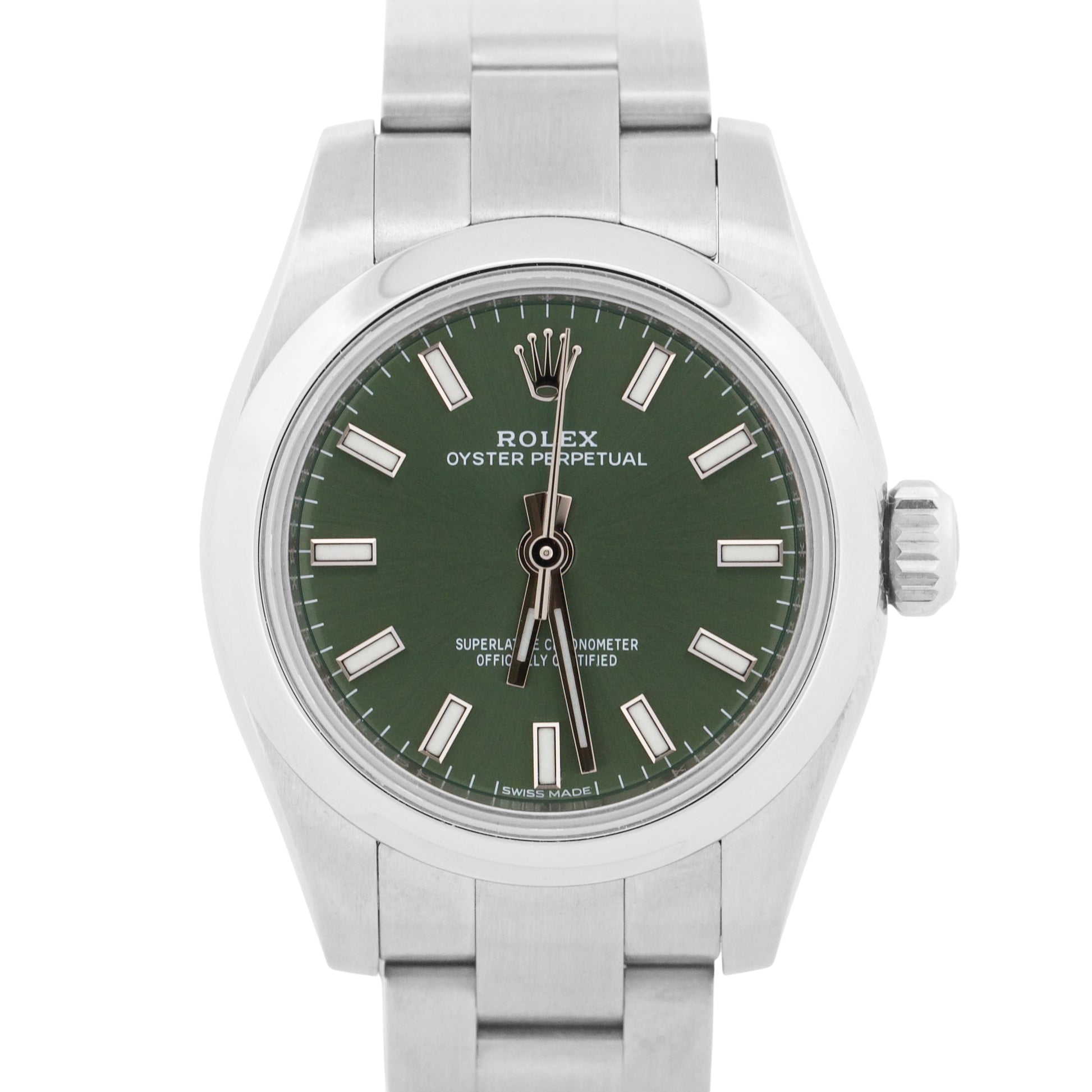 Ladies Rolex Oyster Perpetual OLIVE GREEN 26mm Stainless Steel Watch 176200