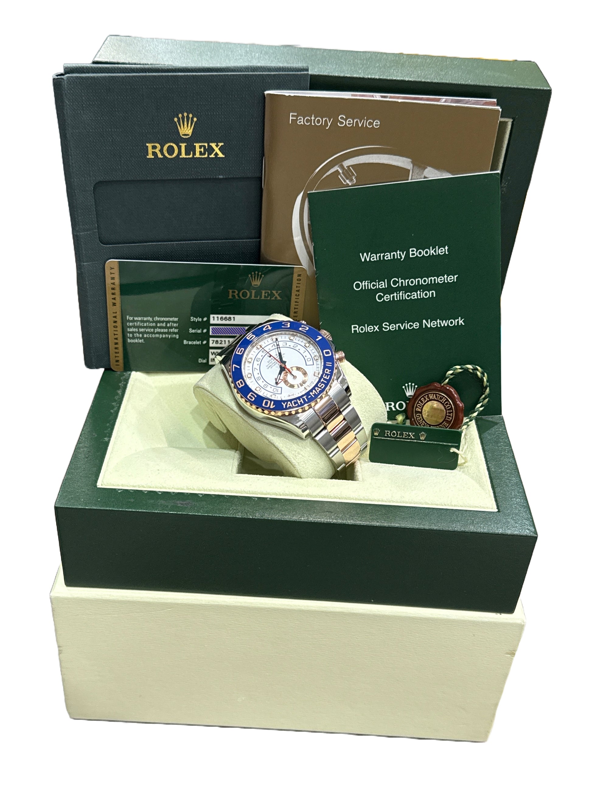 MINT PAPERS Men's Rolex Yacht-Master II 44mm BLUE HANDS 18K Steel 116681 BOX