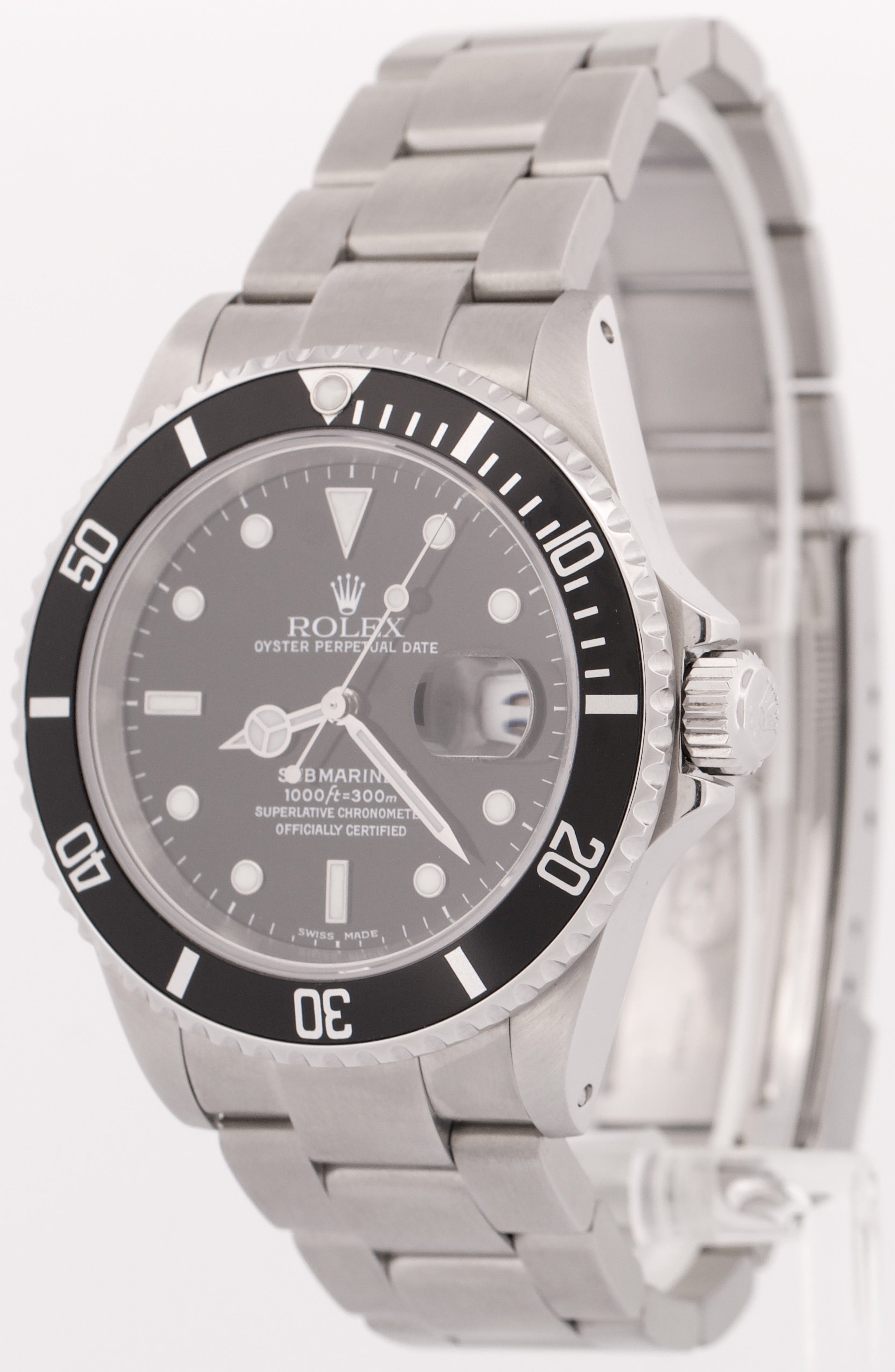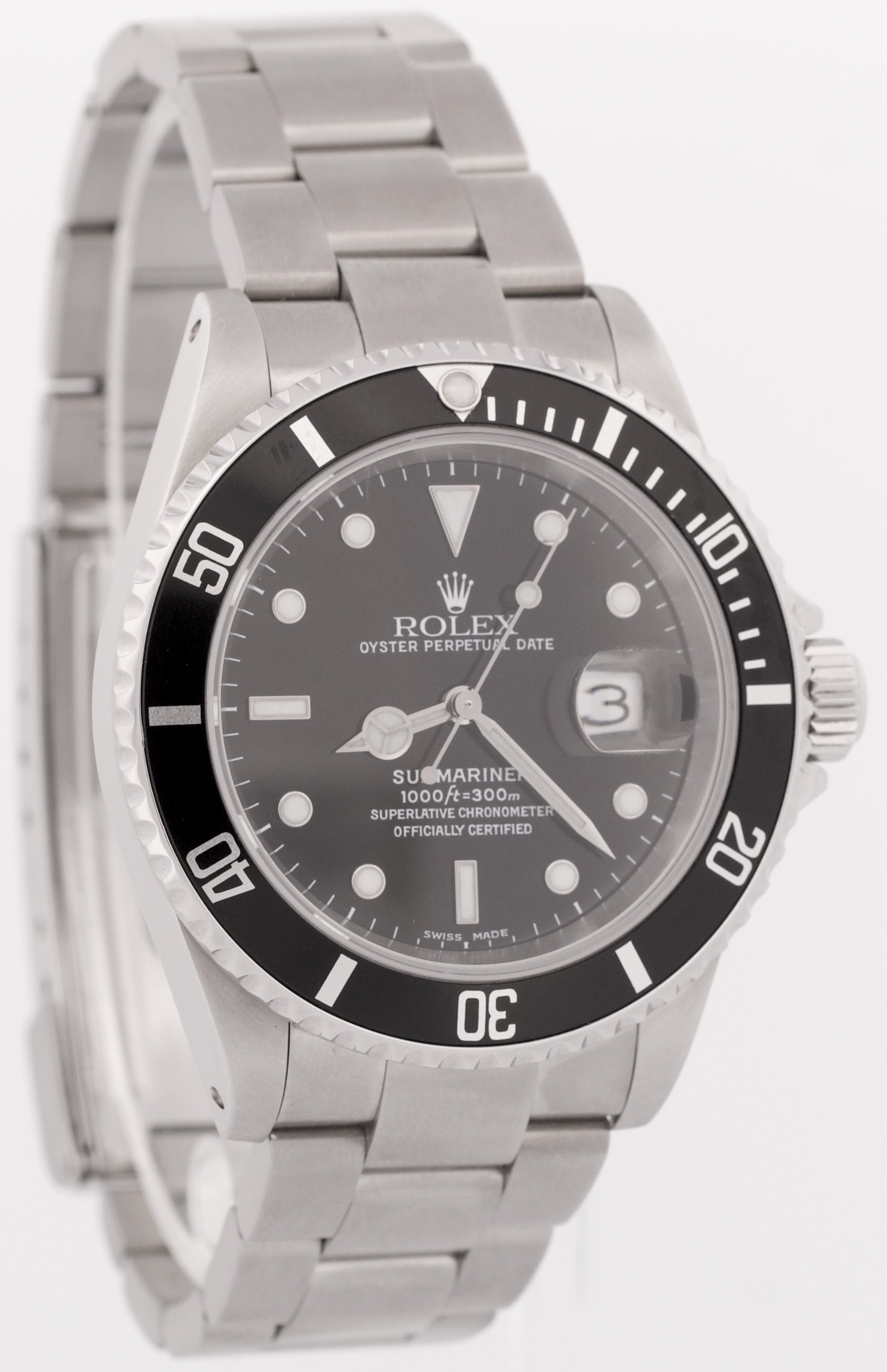 MINT PAPERS Rolex Submariner Date BLACK Stainless Steel 40mm Watch 16610 BOX