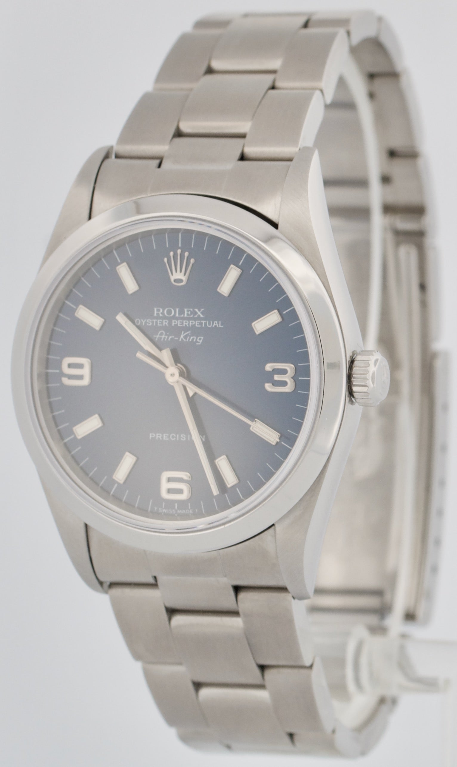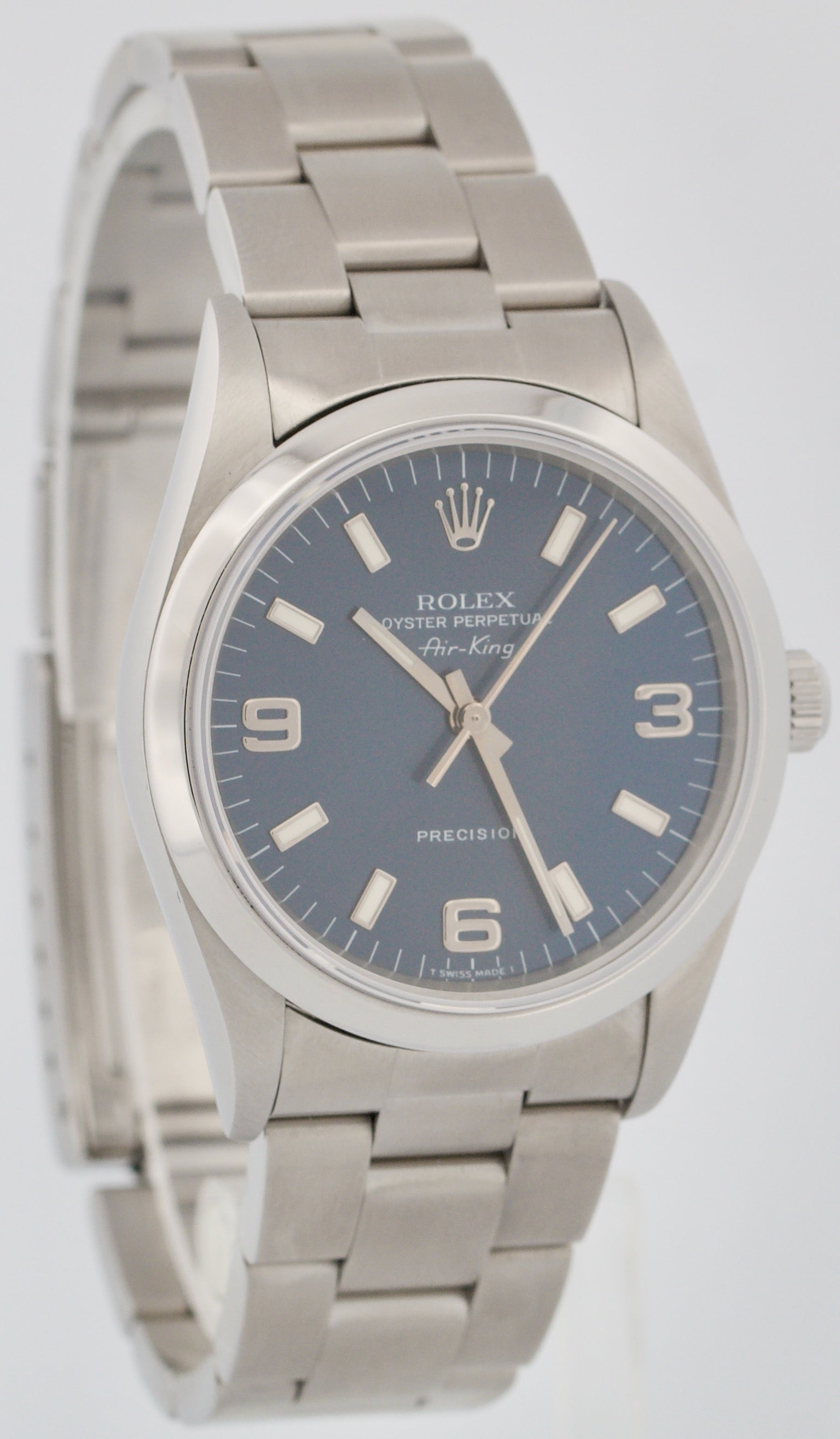 MINT Rolex Air-King Precision BLUE Stainless Steel 3-6-9 34mm Watch 14000